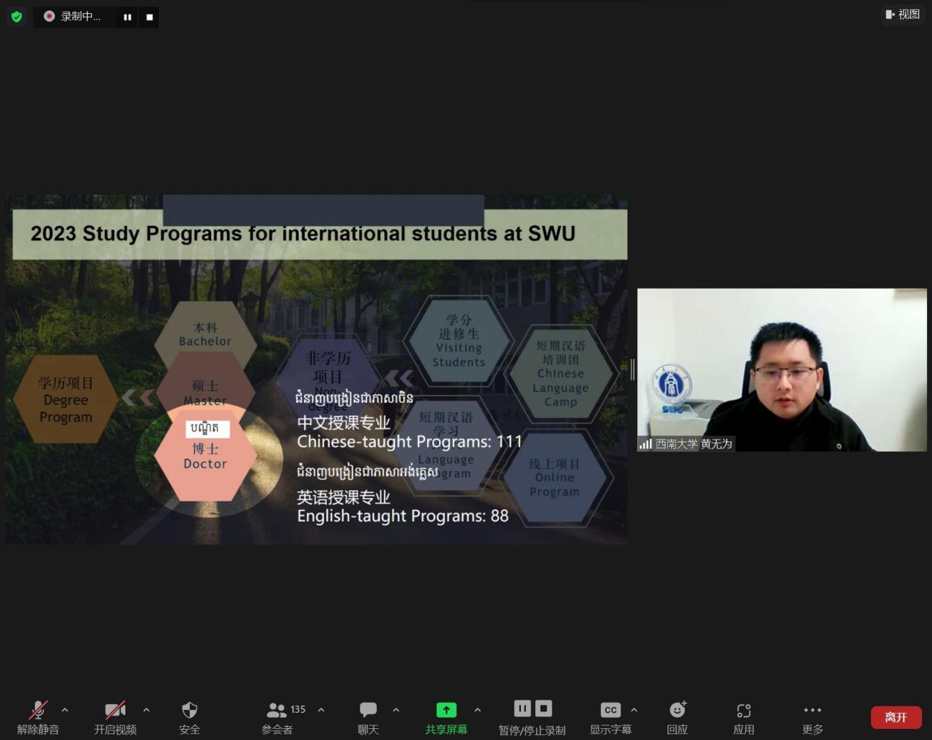 据悉,本次柬埔寨专场是由汉考国际组织的系列教育展之一,也是继俄罗斯专场之后,学校今年参加的第二场汉考国际主办的线上招生宣讲会,12月中旬学校还将继续参加泰国站宣讲。