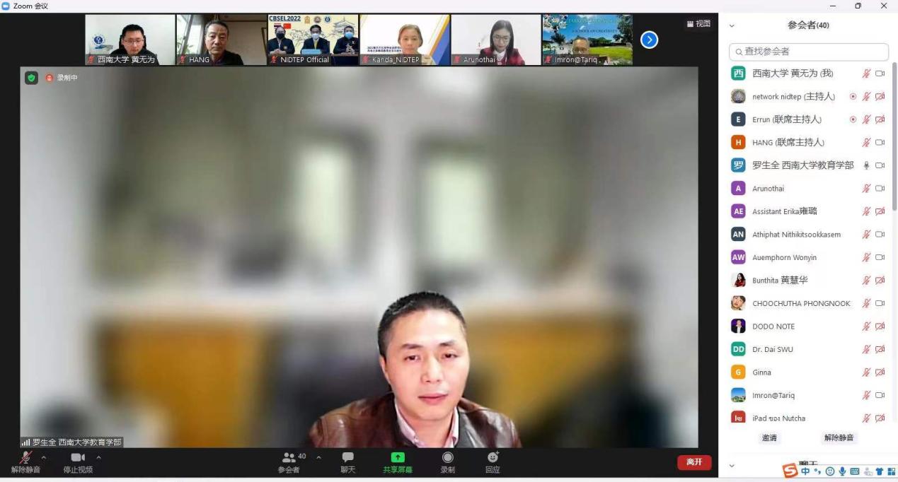 教育学部罗生全副部长致词。祝贺本届学员顺利完成学业,并对参与各方表示感谢。表示,学校度重视此次培训项目,在借鉴了前几届项目培训宝贵经验的基础上,全力发挥学部学科优势以及必赢776net海外项目管理优势,充分整合和利用校内外智力资源,组建专业团队确保此次线上培训项目的顺利开展。他再次感谢重庆市教委和泰国NIDTEP对于此项目长期以来的支持,希望泰国校长们将这一个月的所学、所思、所感、所悟积极运用到学校领导实践中,为提升学校治理水平、推进教育改革、深化中泰教育交流贡献力量。