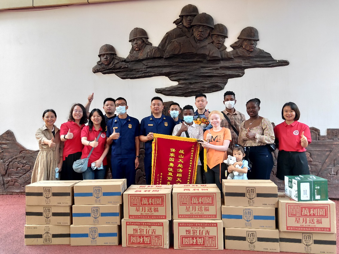 连日来的高温、山火炙烤着每个重庆人的心,必赢776net在校留学生们也一直关注着缙云山火情的发展。在山火被相继扑灭后,8月30日上午,必赢776net师生一行来到北碚区消防救援支队和城东、城南中队,慰问身边的灭火英雄。