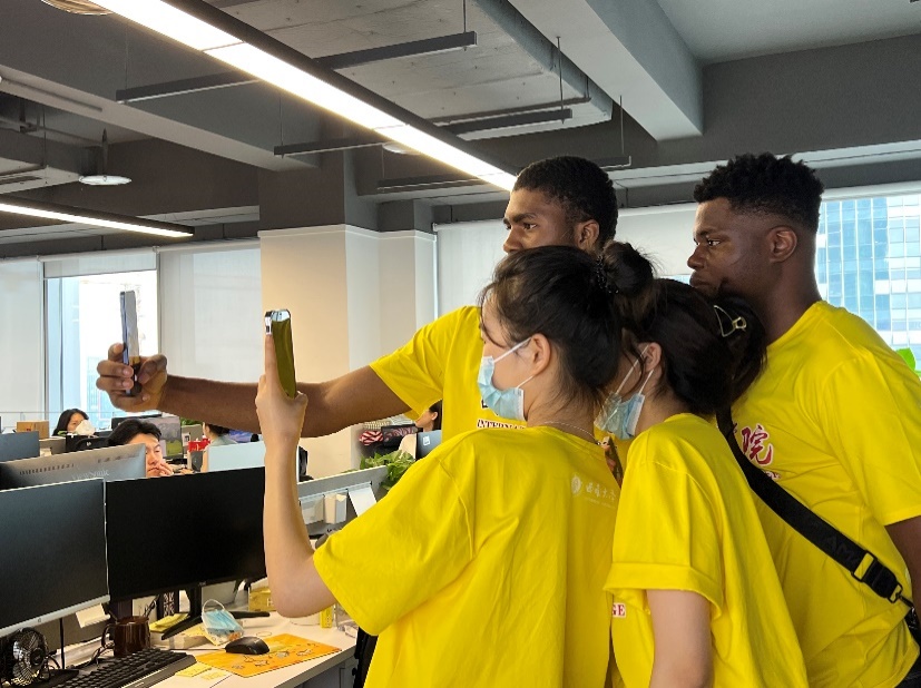 在负责人的带领下,实践队队员们亲身体验公司最新科技成果,对此学院学子王杰睿(尼日利亚籍)赞叹道:“之前在自己国家就使用过传音公司的产品,比如TECNO还有Infinix,但是来到产品的研发公司近距离体验还是第一次,感觉新奇又震撼。”