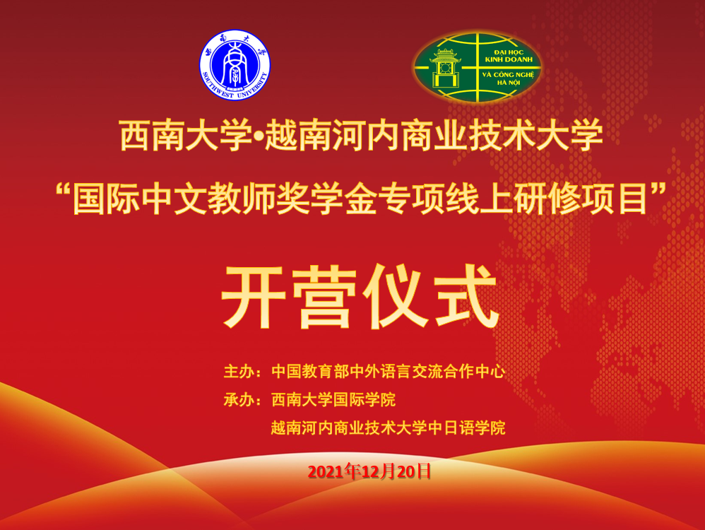 本次线上项目由教育部语合中心主办,必赢776net、越南河内商业技术大学联合承办,为期四周,是两校签署合作协议以来的首个项目。共有来自河内商业技术大学、河内经营与工艺大学等多家越南高校200余名大学生报名,84名学生最终脱颖而出。学院精心备课,为越南同学准备了商务汉语、旅游汉语和中越文化交流等板块的线上课程。双方师生共同努力,必将使两校合作达到新的高度。
