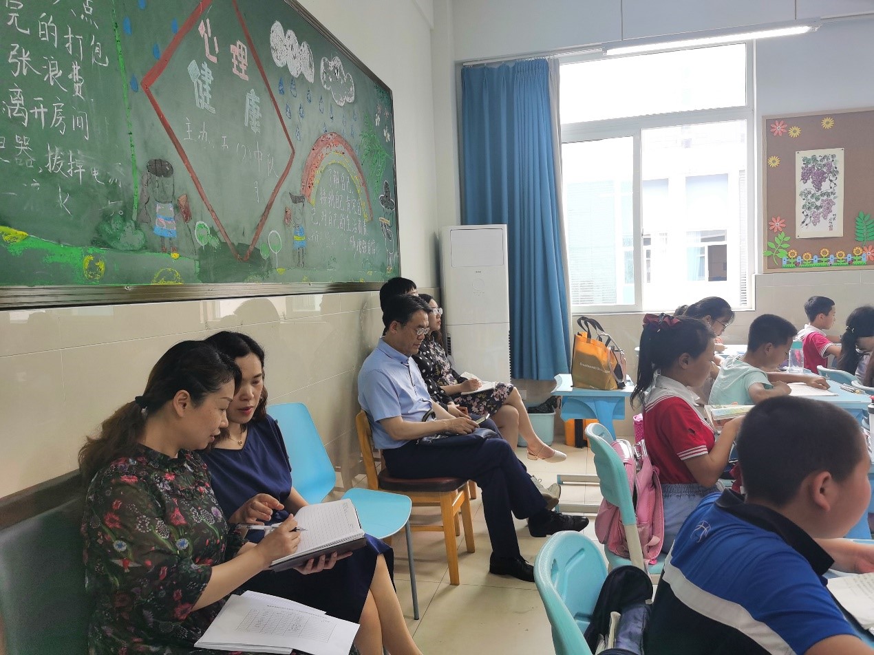 上午,刘猛书记一行与两江名居小学领导及指导老师一同认真观摩实习学生伍雪的课堂教学,随后就伍雪、向蓉两位同学的上课情况、实习整体表现进行交流。