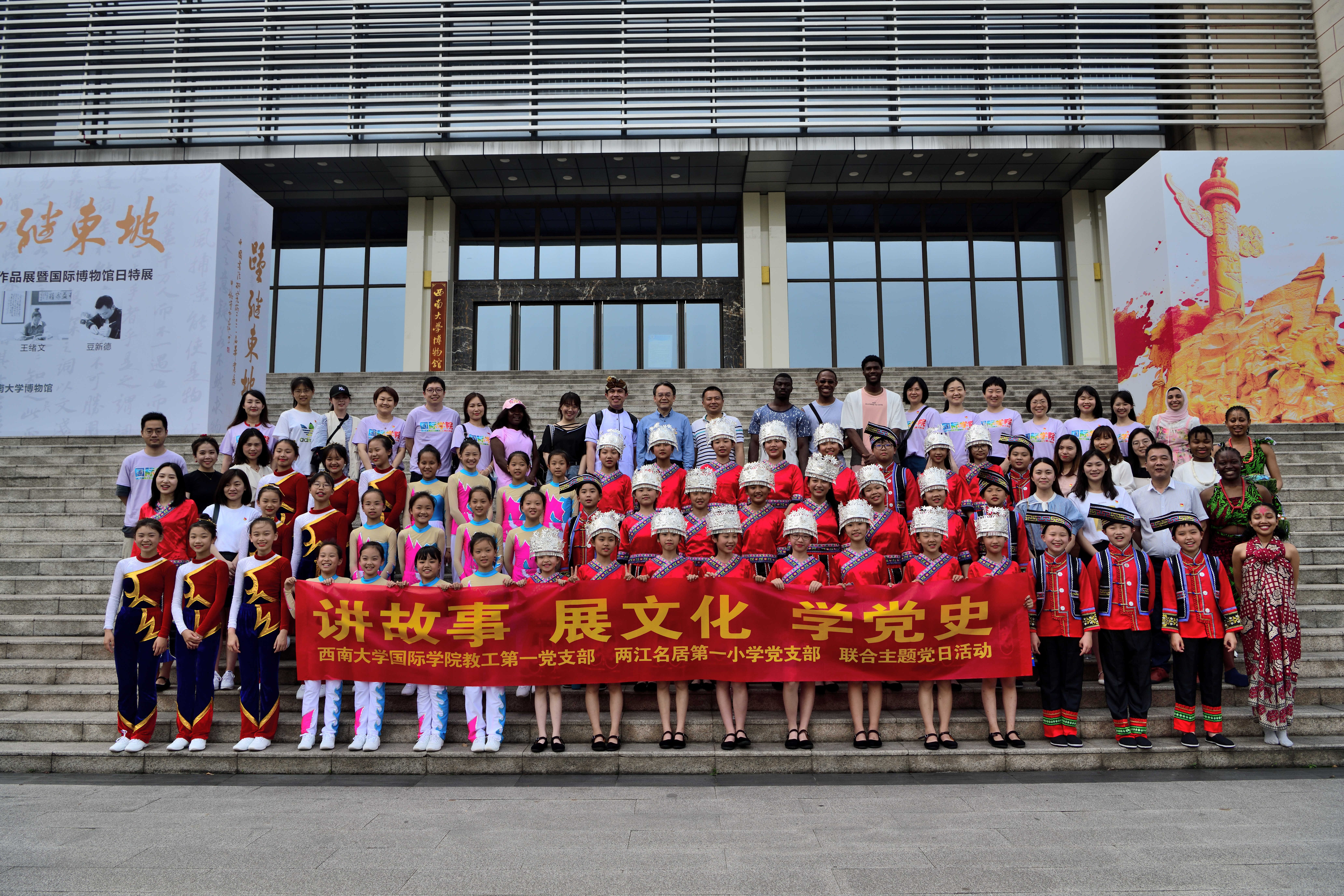 2021年5月14日下午2:30,必赢776net教工一支部与北碚区两江名居第一小学党支部联合举办“讲故事、展文化、学党史”主题党日活动,教工一支部全体党员、留学生代表以及北碚区两江名居第一小学师生共计80余人参加活动。