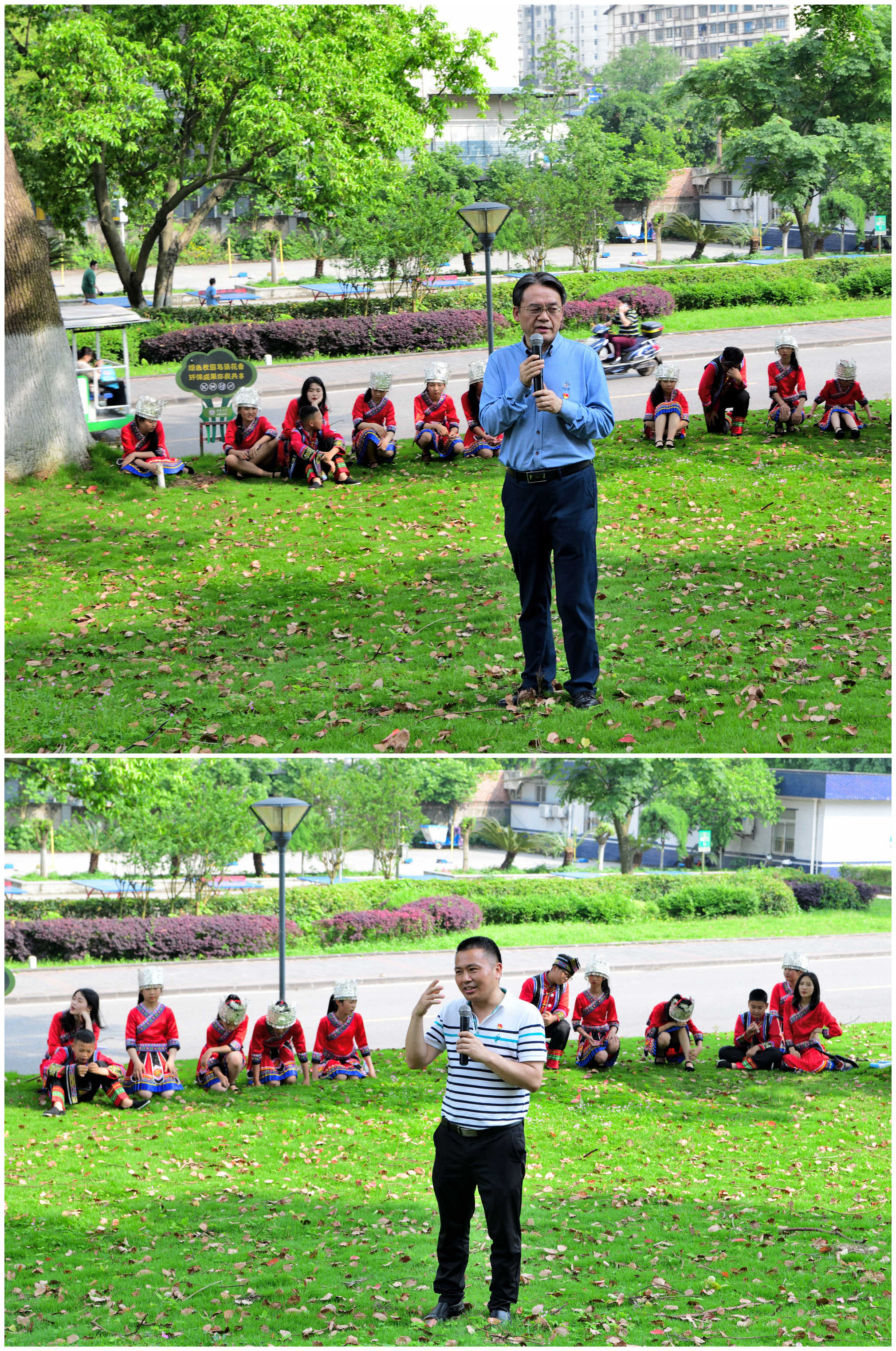 参观后,在校史馆前的草坪上举办了一场别开生面的文化交流活动,必赢776net党总支书记刘猛、两江名居小学党支部书记、校长钟兴福分别致辞。活动分为校史、党史知识竞答及中外学生才艺展示两个部分。竞答环节中,中外学生们踊跃参加,加深了对校史和党史的了解。