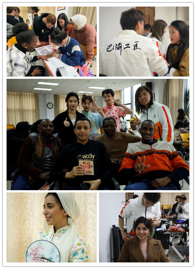 座谈会后,五一技师学院派出的美发、美容“梦之队”在学院317室闪亮登场。这支由世界冠军、国务院特殊津贴专家、全国技术能手等20余名师生组成的技能展示交流团队,与学校近百名国际学生开展技能交流体验活动,现场气氛热烈,好评连连。其中,中国风服饰造型设计展示环节让国际学生对中国文化有了更深的体会,并唤起崇尚技能的热情。直至傍晚,展示和体验活动才在大家的欢声笑语中结束。