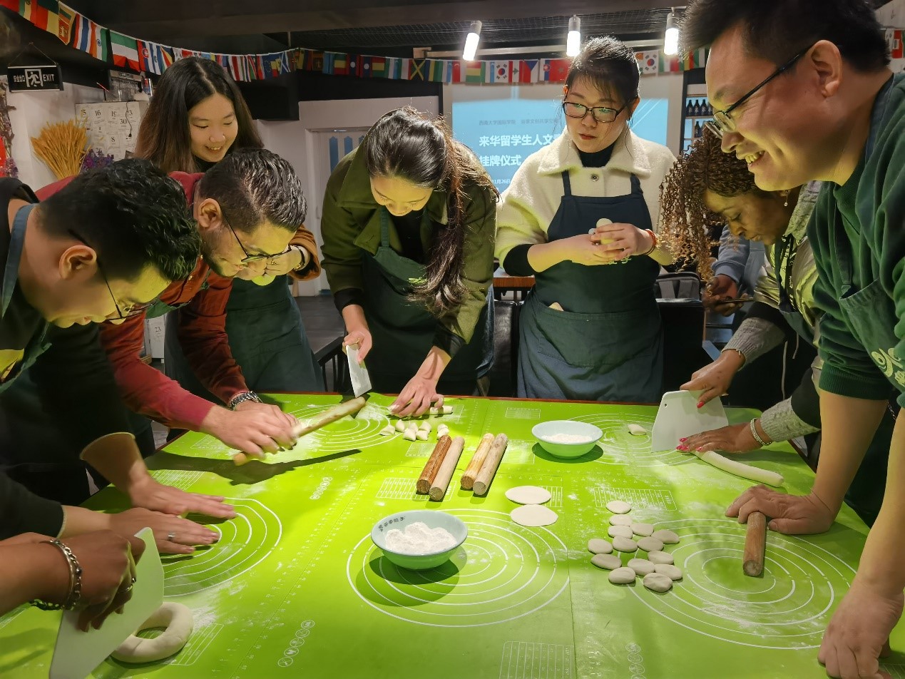 授牌仪式结束后,留学生们还现场体验了手工包饺子,并在美食品鉴中就今后基地活动的开展进行了深入交流。