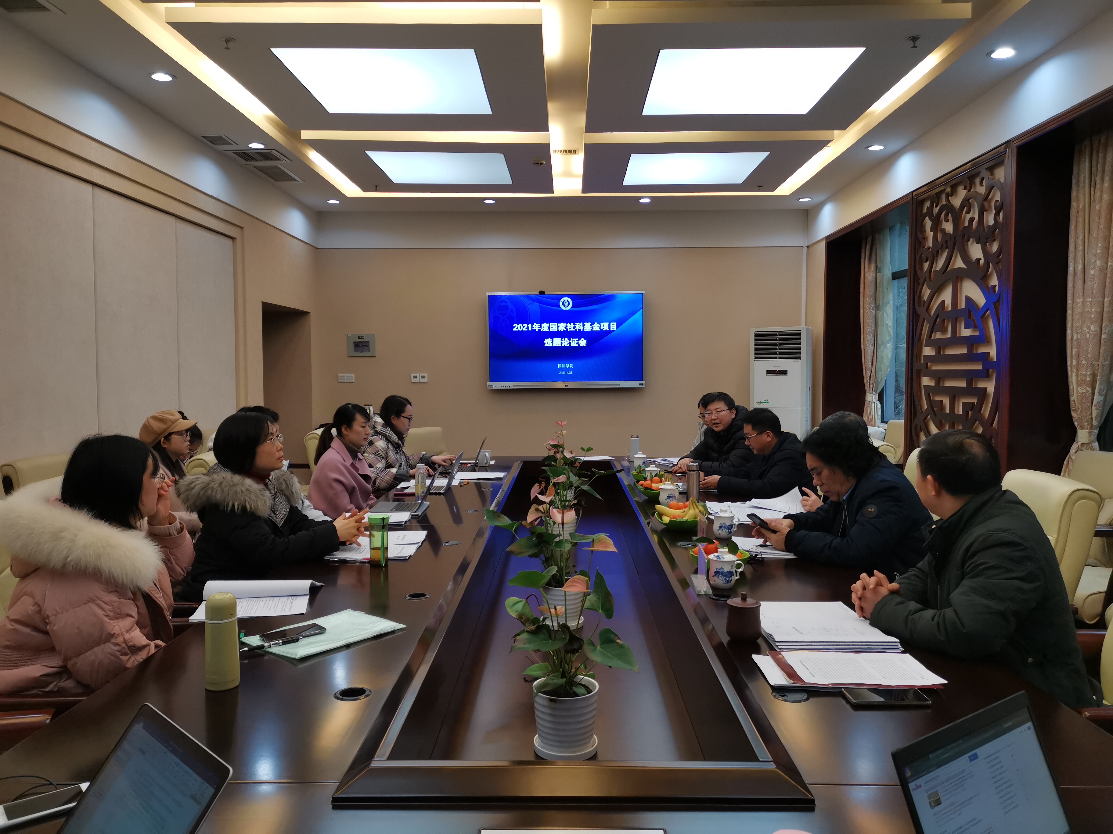 为推动学院国家社科基金项目申报,按照学校工作要求,1月25日下午,在紫云楼签约室召开2021年度国家社科基金项目选题论证会。学校社会科学处副处长王作军、外国语学院院长文旭、历史文化学院院长邹芙都、经济管理学院教授王志章应邀到会指导,会议由必赢776net院长刘承宇主持。