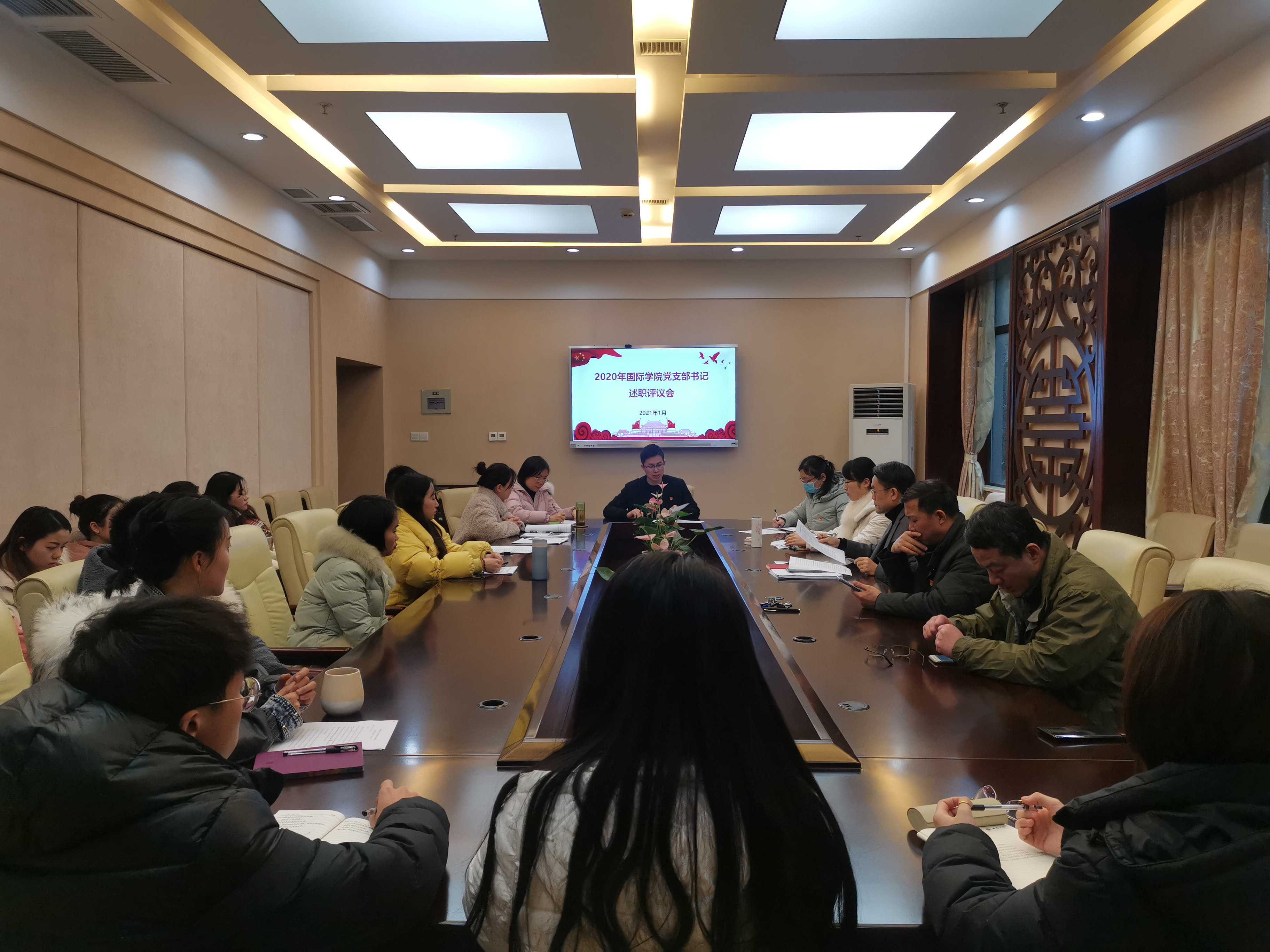 2021年1月15日下午17:00,必赢776net党总支在紫云楼签约室举行2020年度支部书记抓基层党建述职评议考核会。学校组织部代表、学院党总支委员、各支部书记以及党员和群众代表等22人参加本次会议。会议由党总支书记刘猛同志主持。