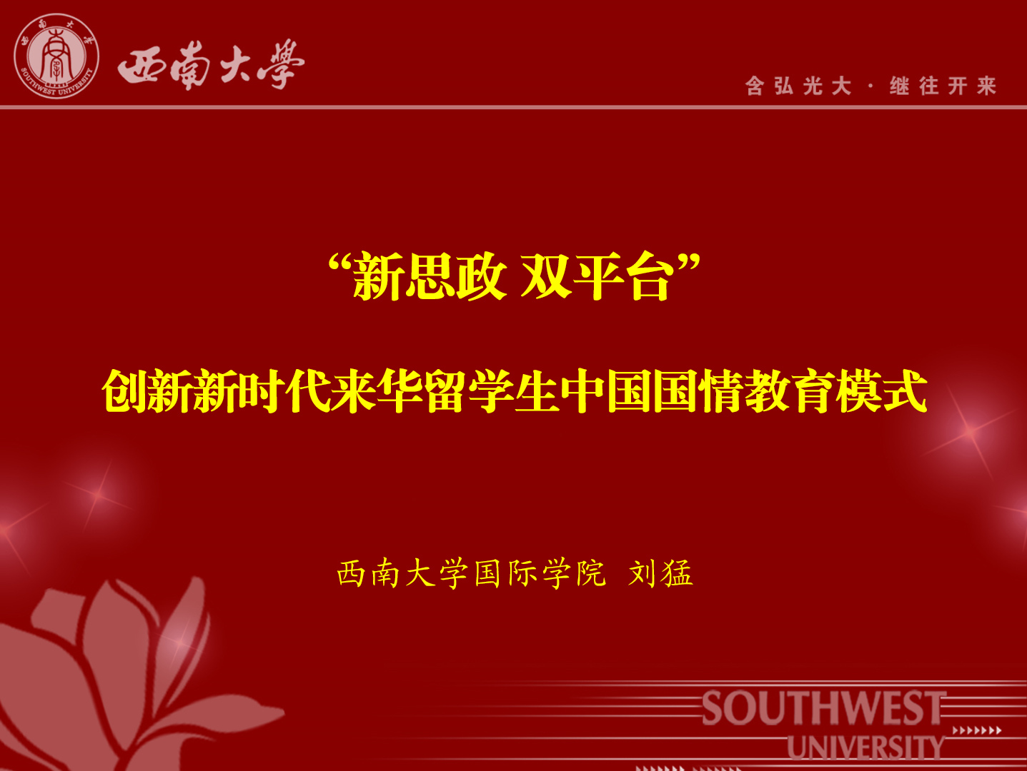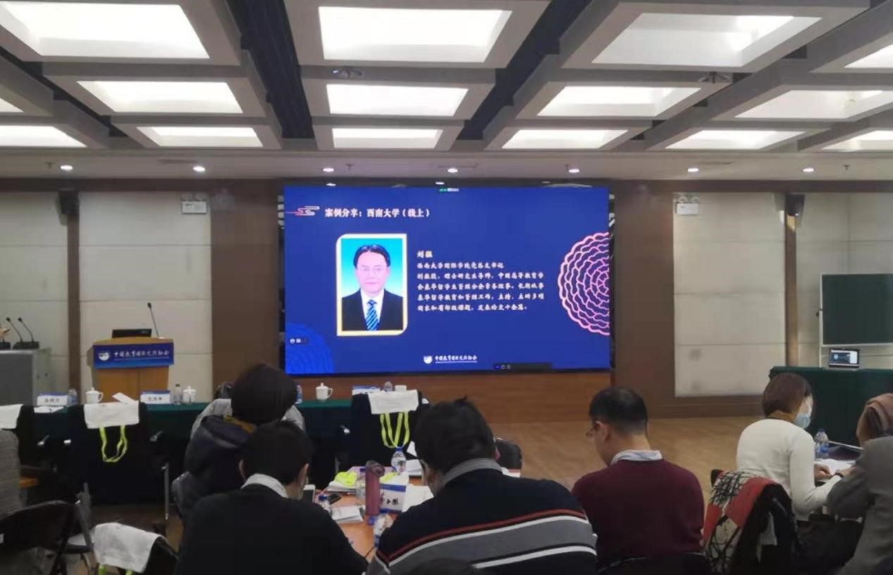 在研讨环节,刘猛书记和电子科技大学、华南理工大学、南京大学等其他三所高校代表受邀在线上分别介绍本校国情教育的先进案例。刘猛书记以“‘新思政 双平台’——创新新时代来华留学生中国国情教育模式”为题,介绍了学校来华留学国情教育“第一课堂”与“第二课堂”同频共振,“交流思想”与“传递价值”相辅相成的有关经验做法,得到了与会高校的一致认同。