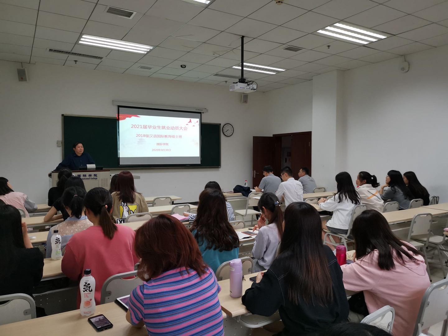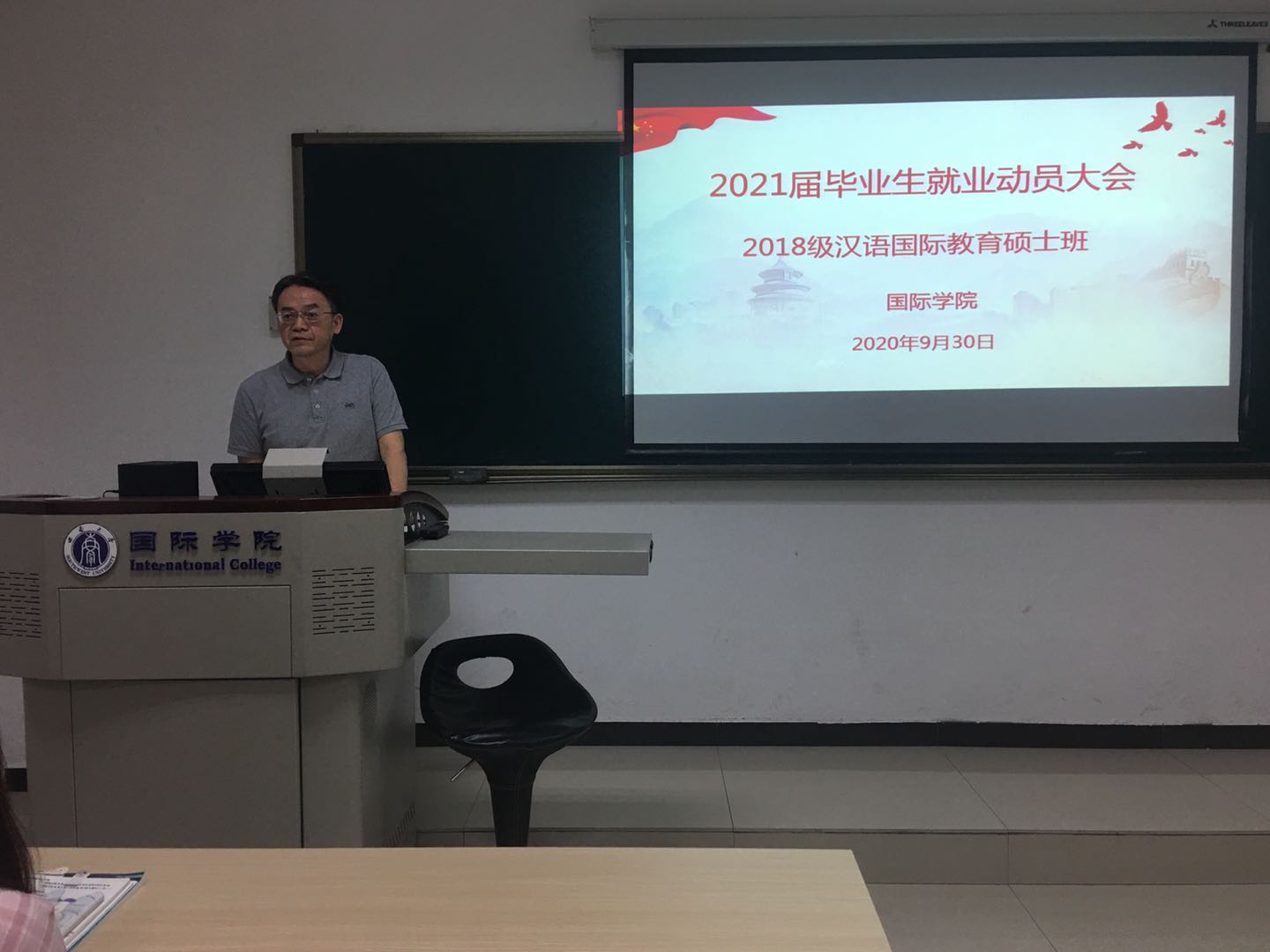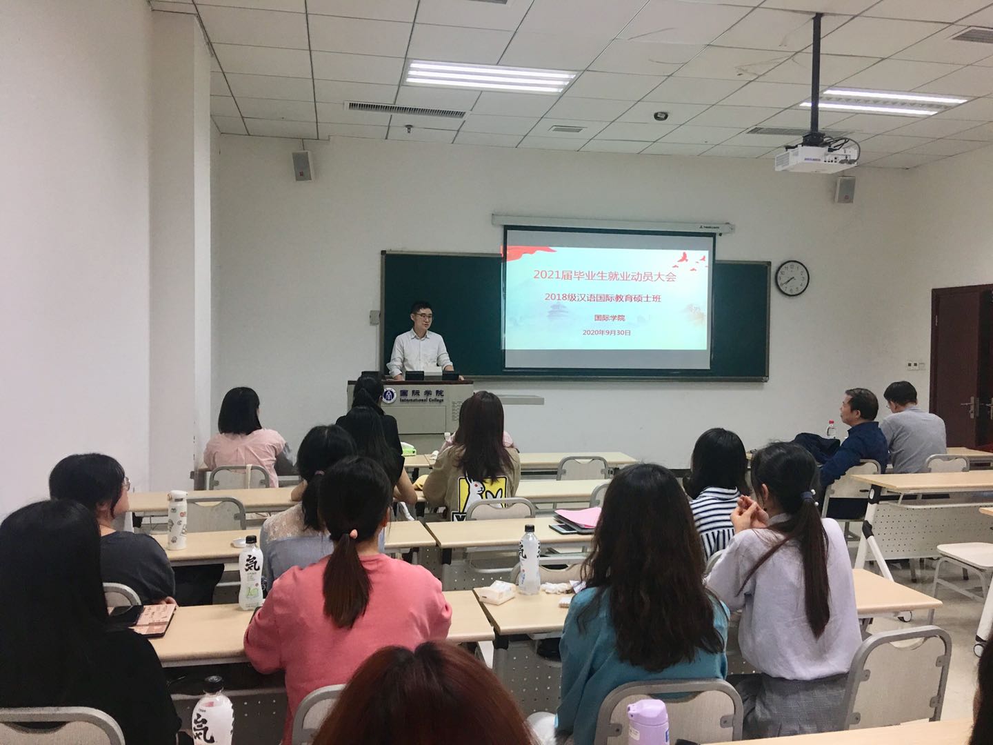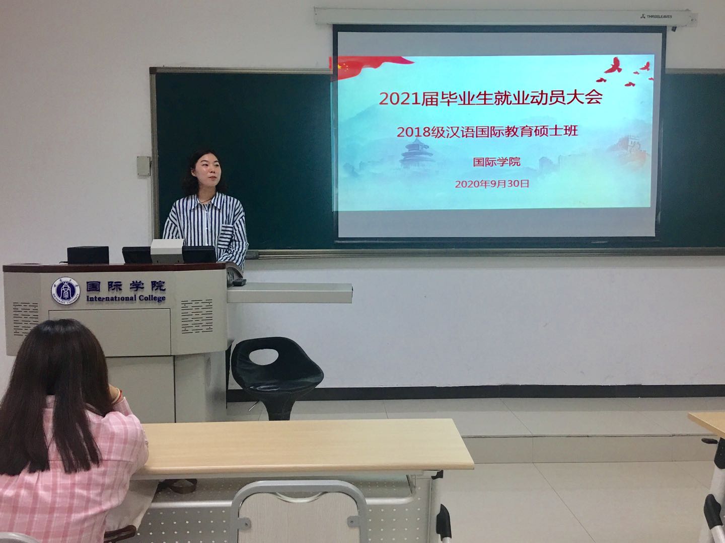 伴随着毕业季的来临,为了帮助2021届汉语国际教育硕士毕业生树立正确的择业观,处理好就业与毕业的双重压力,走好毕业季之路,9月30日下午4:30,学院在312室隆重召开毕业生就业动员大会。