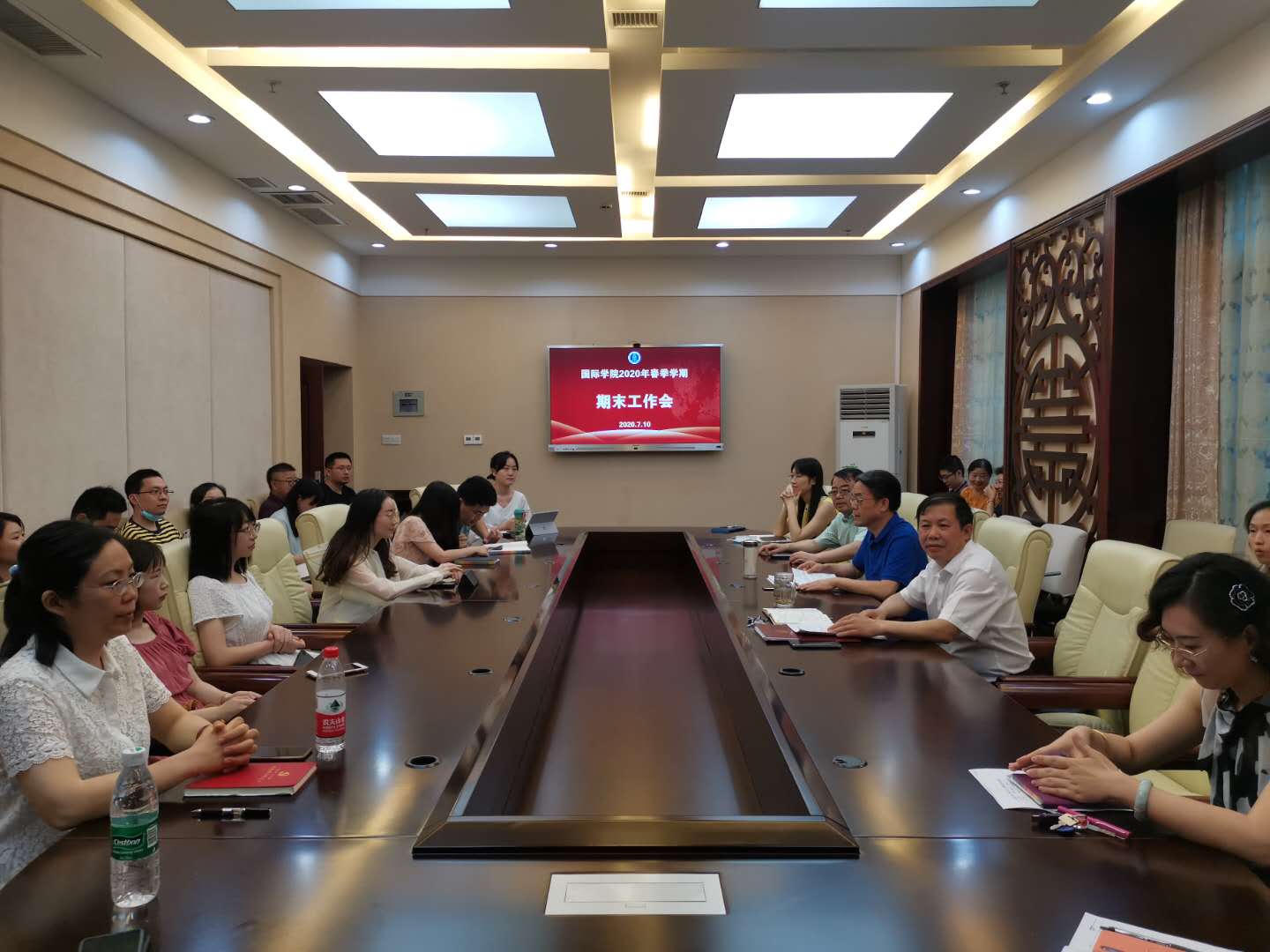 首先,刘承宇院长对学院春季学期工作进行了总结。指出,虽然本学期学院工作以抗击新冠肺炎疫情为中心,但其他工作并无偏废,依旧有序运作。预计招收新生484人,成功举办线上线下结合的国际学生毕业典礼,圆满完成线上教学和毕业授位工作,按期完成三栋大楼设施设备的修缮工作;通过修订《必赢776net国际学生招生与教育管理办法》等文件,基本理清必赢776net与职能部门、二级培养单位的关系,希望通过加强师资队伍建设和学科发展,提升学院整体科研水平。强调,下学期招生和教学工作应未雨绸缪,视疫情发展,备好方案,做好两手准备。最后,鼓励学院全体教职工齐心协力,助力学院圆满转型,共建学院特色生态圈,使学院事业蒸蒸日上。