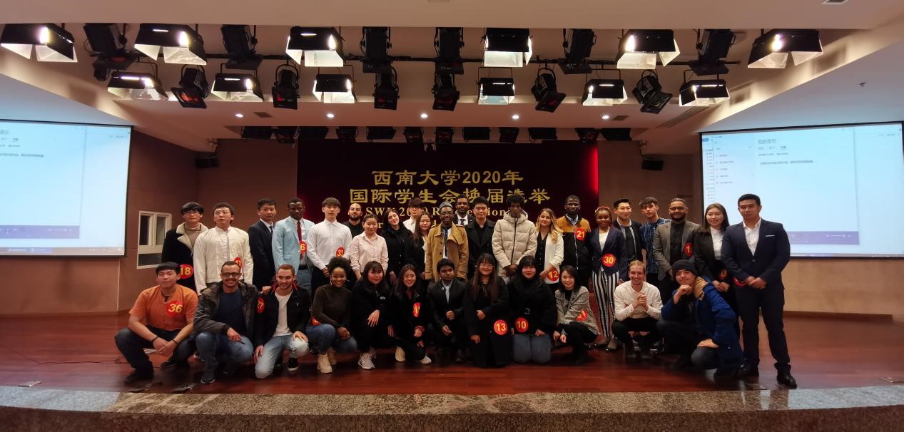 因此次候选人人数较多,学院在选举前通过微信公众号发布了全体候选人的参选视频。在主持人介绍了选举规则和投票方法之后,来自17个国家的38位竞选人一起登台,利用最后一刻为自己拉票。随后,在现场工作人员的组织下,到场的国际学生们依次投下自己神圣的一票。最后,竞选同学和大会工作人员合影留念,选举大会圆满结束。