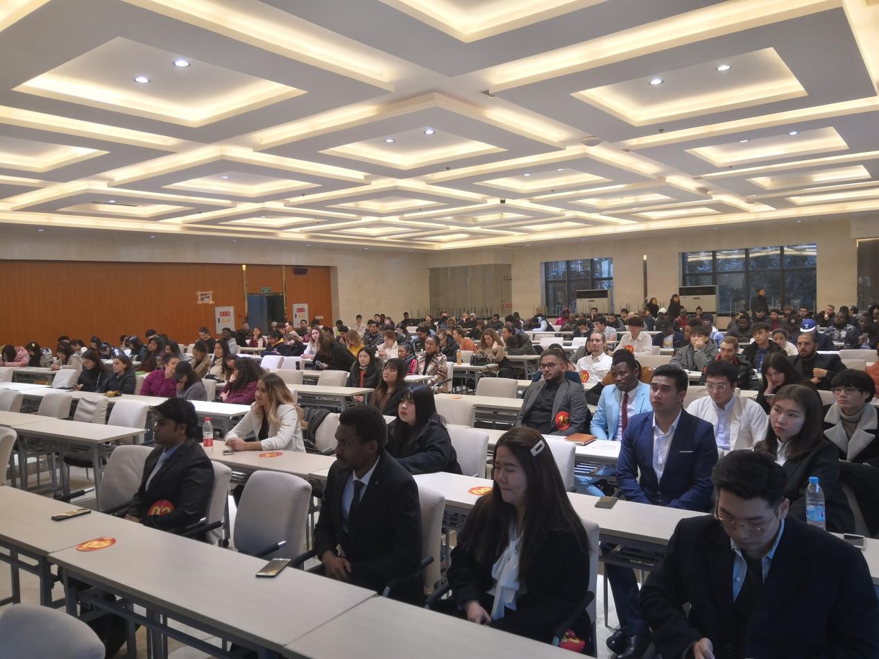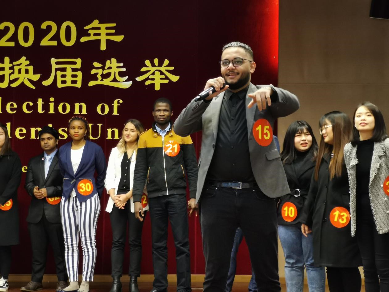 1月9日下午5点,必赢776net2020年国际学生会换届选举大会在必赢776net报告厅隆重举行,来自17个国家的38名候选人就新一届留学生会的主席、副主席和秘书职位展开竞选。学生工作办公室主任陈雨曦老师以及全校近400名国际学生出席选举大会。