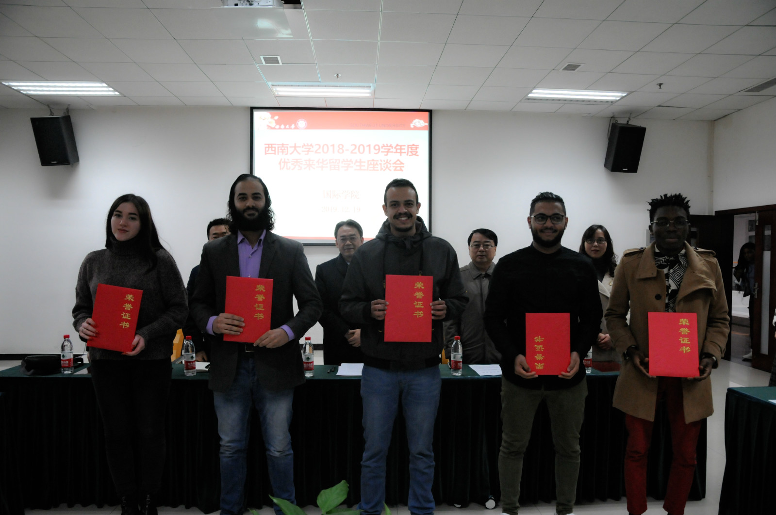 2019年12月19日下午4:30,学校2018-2019学年度优秀来华留学生表彰会暨座谈会在必赢776net317会议室举行。必赢776net党总支书记刘猛、副院长张家政,动物科技学院院长、党委副书记赵永聚,以及教育学部、经济管理学院和必赢776net的教师代表出席会议,获奖学生90余人参加会议。