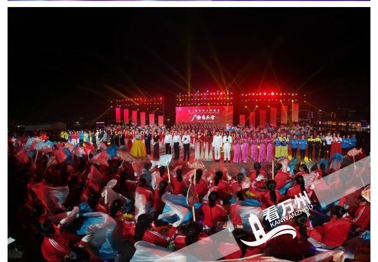 平湖上,游轮来往,灯火辉煌。广场里,人头攒动,歌声飞扬。