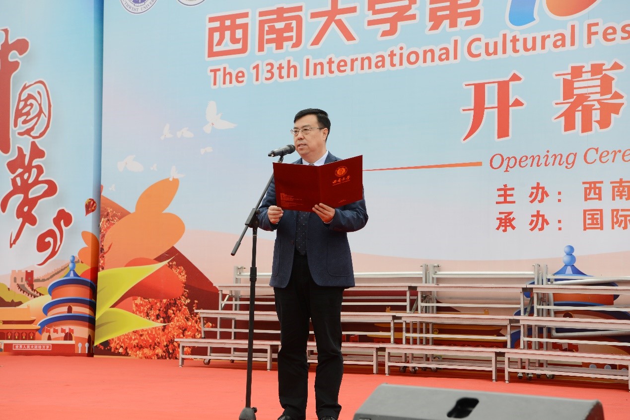 11月17日下午,以“中国梦 五洲情”为主题的学校第十三届国际文化节在第四运动场上拉开帷幕,来自近90个国家和地区的留学生参加了本次国际文化盛典。重庆市外办、市公安局出入境管理局,北碚区委宣传部、区公安分局等部门相关领导,学校副校长王进军和学校相关单位负责人出席开幕式。