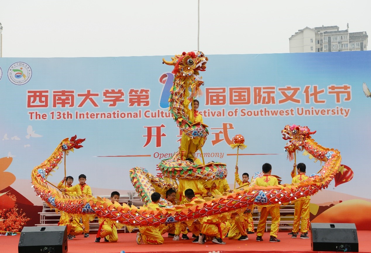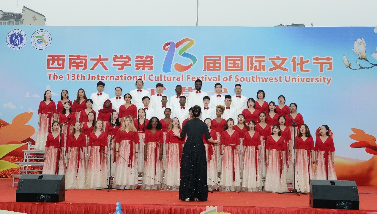 开幕式气球启动仪式后,来自不同国家的留学生联袂献上精彩的歌舞表演,歌含情、舞带意,堪称视听盛宴。俄罗斯和白俄罗斯学生带来古老浪漫的伊万库帕拉节优美舞蹈,四国同学联唱旋律优美的《另一个天堂》,北碚两江名居小学龙舞队带来活灵活现的《父子龙》,热情奔放的非洲舞蹈引发全场起舞,必赢776net五洲合唱团师生演唱的《我和我的祖国》等曲目将现场气氛推到高潮。