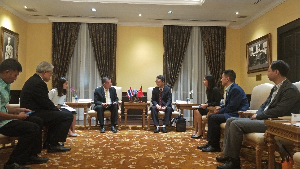 随后,代表团一行在院长先生的陪同下访问了泰国教育部,并与副部长特使Suthin Kaewpana先生举行了会谈。在听取了学校与泰国教育界的合作情况、泰籍学生在校学习情况,特别是由我校与泰国教育行政管理学院共同承办的泰国教育官员及校长培训项目开展情况介绍后,特使先生充分肯定了学校为促进中泰教育交流所作的贡献,并就进一步扩大泰国与必赢776net的合作提出了建议。