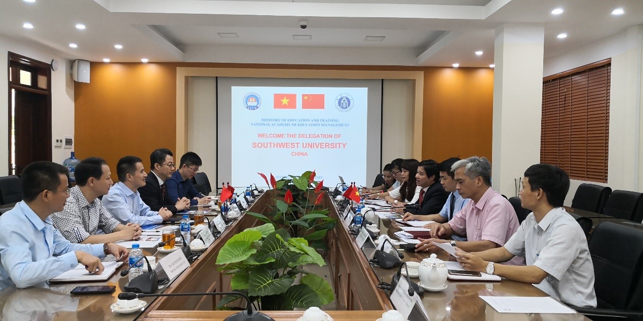 8月26日,代表团一行访问了越南教育管理学院,并与该校校长Pham Quang Trung教授、副校长Tran Duc Minh教授、国际合作处处长Le Thi Thuy Nga及相关工作人员举行了会谈。在简要回顾了教育领导与管理专业硕士研究生的境外办学项目后,双方就该项目在招生录取、教学管理、学位认证等方面所面临的问题和挑战进行了深入洽谈,共同寻求解决方案。同时,双方还一致同意开拓两校在短期访问学习等方面的合作。