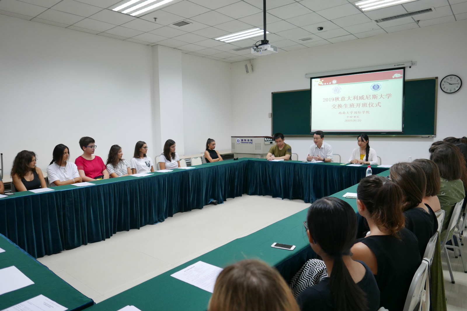 9月10日上午10点,2019-2020-1学期意大利威尼斯大学交换生班开班仪式在必赢776net紫云楼312教室举行。必赢776net李航副院长,招生办公室黄无为老师,意大利威尼斯大学交换生班26位同学参加了本次开班仪式。仪式由班主任刘妍芩主持。