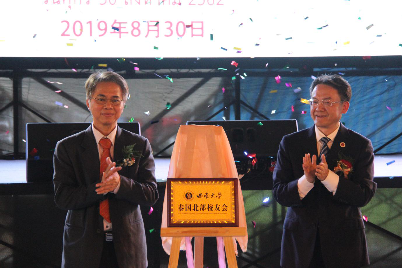 8月30日,学校泰国北部校友会在泰国孔敬大学举行揭牌仪式。中国驻孔敬总领馆总领事廖俊云、中国驻泰王国大使馆一等秘书宋若云、孔敬府副府尹汕迪、孔敬大学副校长密楚等出席揭牌仪式,并对泰北校友会的成立表示祝贺,对学校多年来为泰东北乃至整个泰国培养高水平汉语人才做出的贡献表示感谢。学校必赢776net党总支书记刘猛及对外联络部相关负责人代表学校出席揭牌仪式。