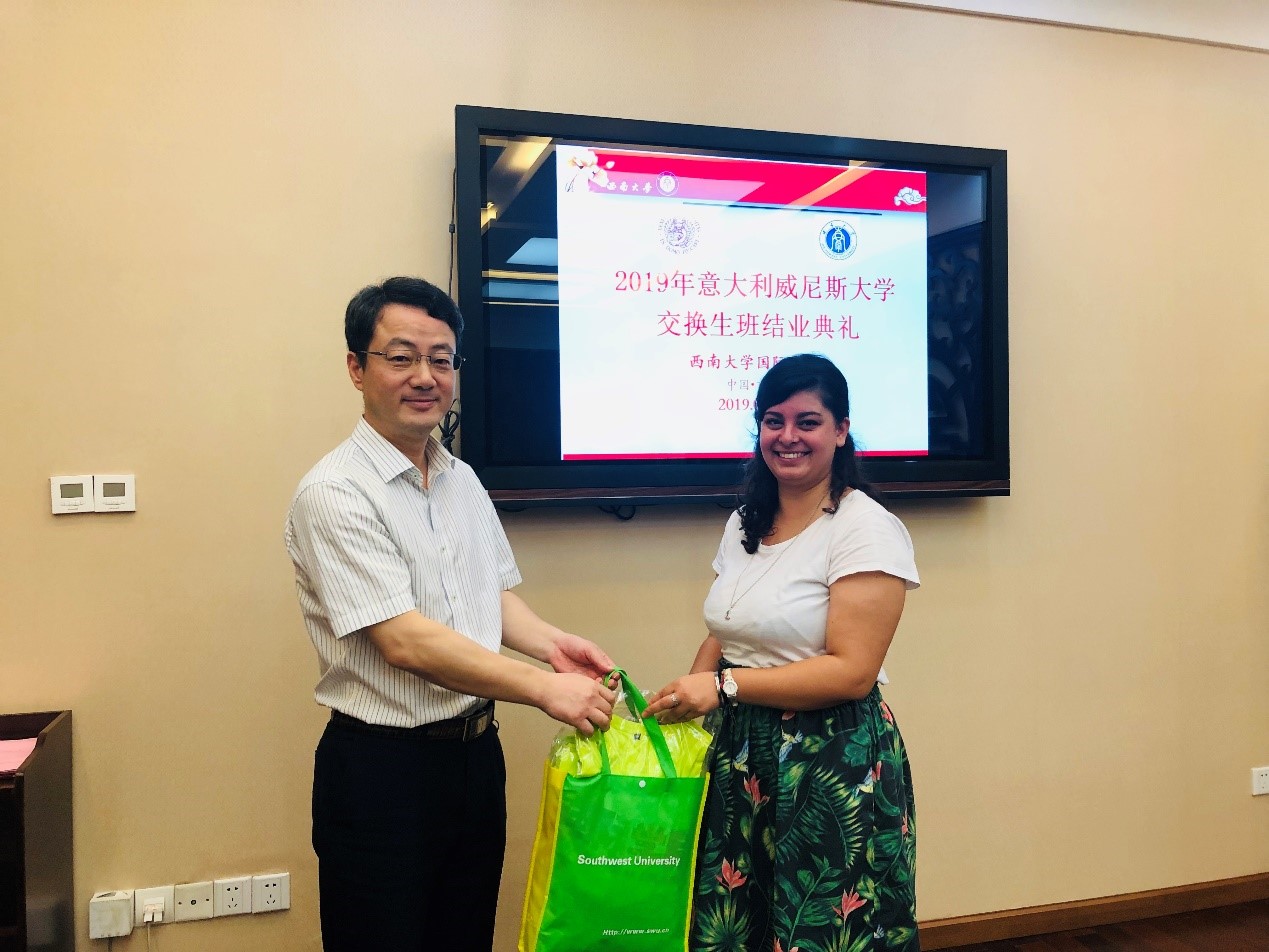 7月4日上午10点,意大利威尼斯大学交换生班结业典礼在必赢776net紫云楼签约室举行。必赢776net李航副院长,必赢776net教师代表陈婷婷、冯换叶老师,2018-2019-2学期意大利威尼斯大学交换生班学生参加了本次结业典礼。典礼由班主任刘妍芩主持。