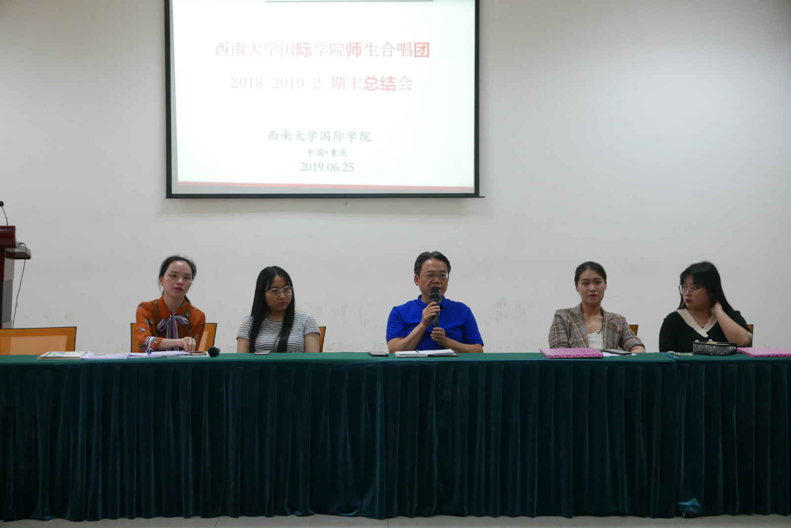 刘猛书记做总结发言。他指出,音乐无国界,希望合唱团以后能从选曲上和形式上实现多元化,在“一带一路”倡议和人类命运共同体的理念指导下,真正践行文明互学互鉴,将合唱团打造成不同国家文化交流的平台。他希望同学们能常怀一颗感恩的心,不忘初心,将对音乐的热爱继续坚持下去。