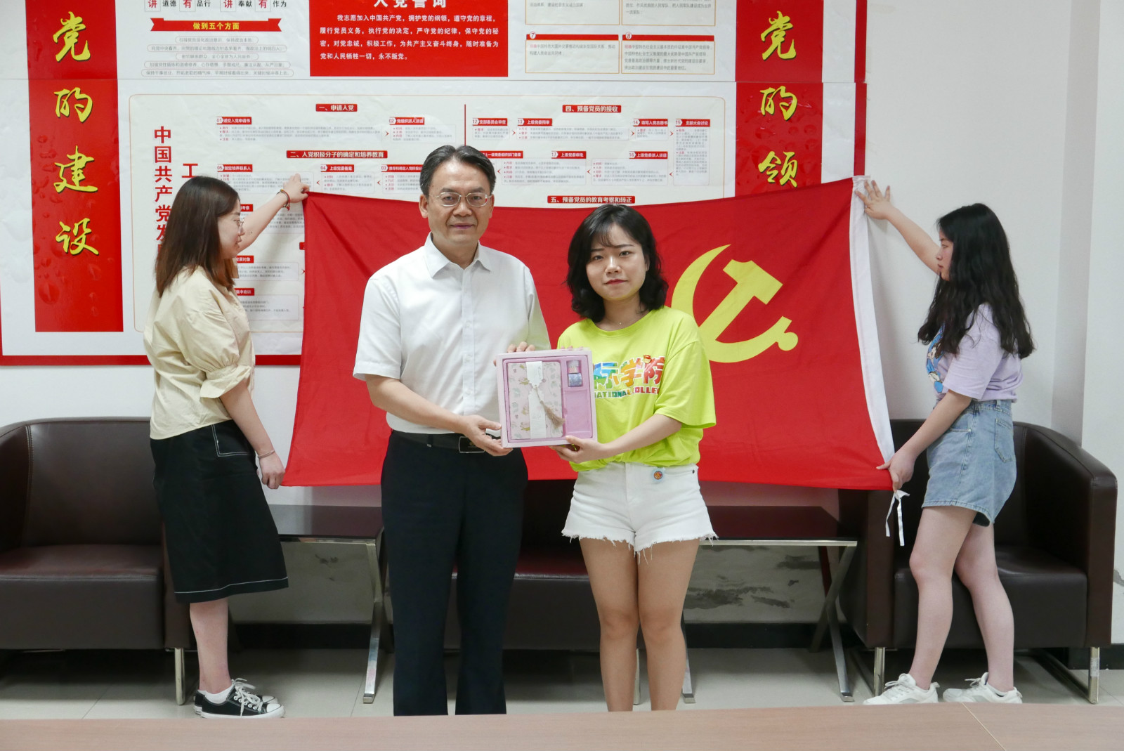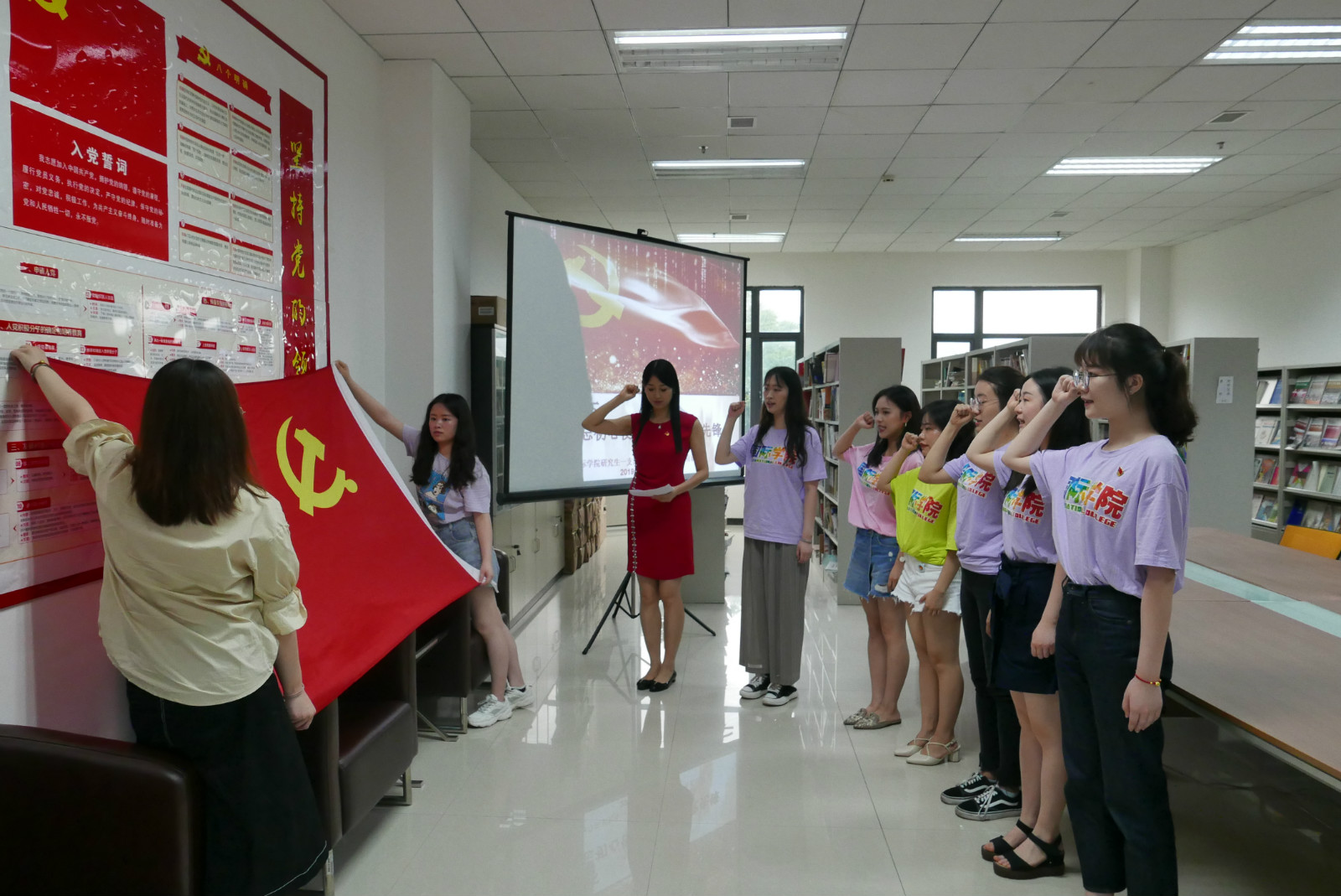 随后,党员们依次在党旗下许下了毕业生党员承诺,表示会继续不忘初心,砥砺前行,在以后的工作岗位上发挥党员的先锋模范作用。