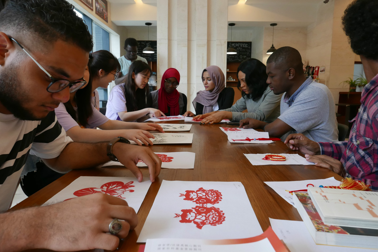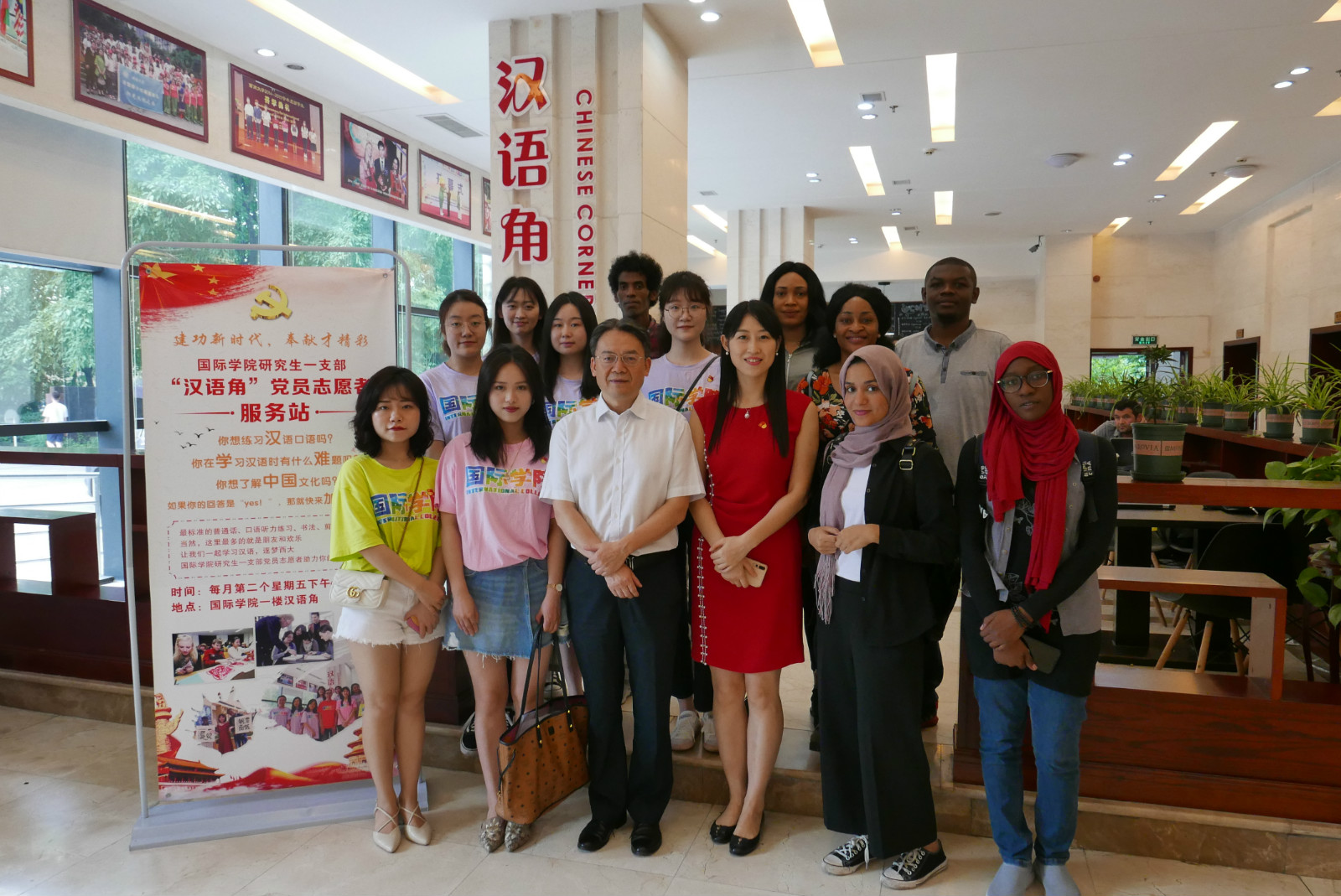 会后,全体党员一同前往紫云楼一楼汉语角参加了 “建功新时代•奉献才精彩—必赢776net研究生一支部汉语角党员志愿服务站”启动仪式,并现场教授留学生们汉语、剪纸和中国结。活动结束后,毕业生党员们前往杏园宿舍,进行了园区清扫活动。