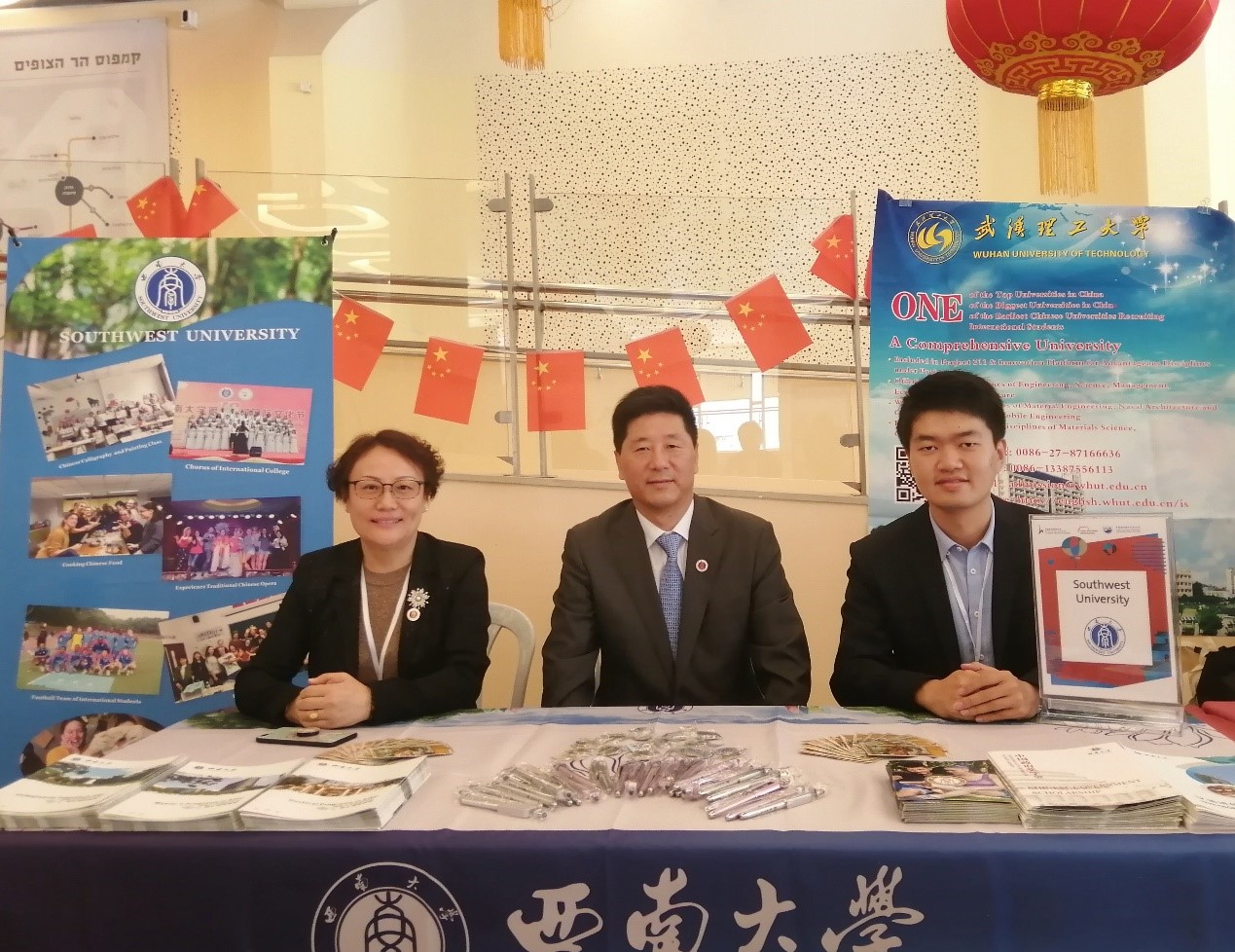 学校代表团先后在希伯来大学、海法大学、罗兰大学和塞维利亚大学参加高等教育展。必赢776net展位以“魅力西大 宜居宜学”为主题,宣传海报中配以重庆夜景、学校概况和留学生品牌活动的图片介绍,在教育展中显得别具一格,吸引了众多学生和家长前来咨询交流。代表团还向咨询者介绍了学校的优势专业、全英文授课专业及各类奖学金情况等,给有来校留学意向的学生及家长分发了宣传资料,指导填写了《必赢776net来华留学意向登记表》,并给他们赠送了精美的纪念品。此行的四次教育展吸引了近千人到现场观摩咨询,为学生搭建起了留学中国、了解中国的桥梁。