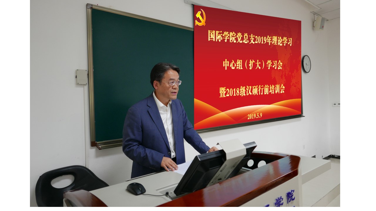 2019年5月9日下午3:30,必赢776net党总支在紫云楼312室举行理论学习中心组(扩大)学习会暨2018级汉语国际教育硕士出国实习行前安全培训会。党总支委员、非党总支委员院领导、院长助理、各支部书记、各科室主任以及2018级汉语国际教育硕士生等共计50余人参加会议。