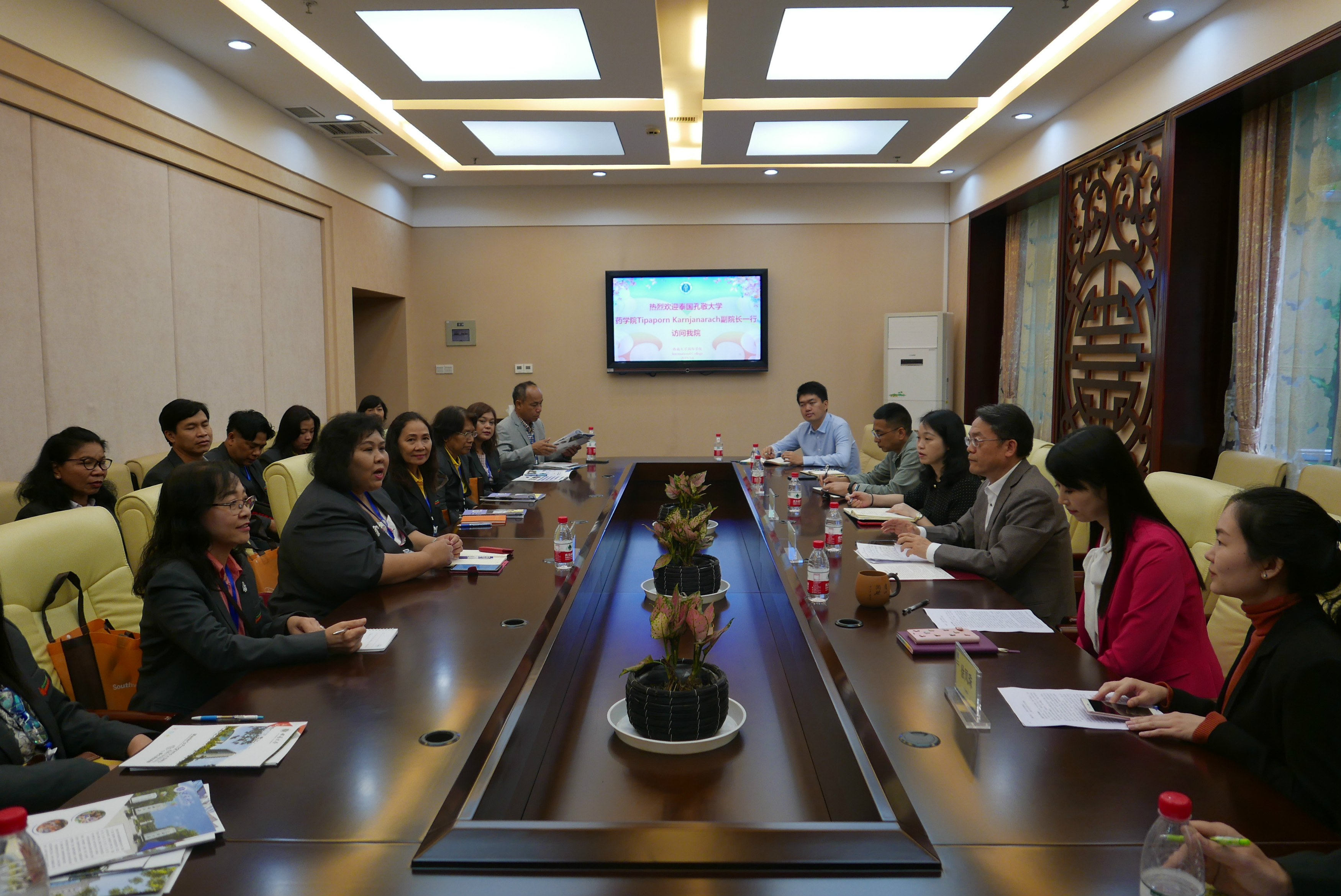5月6日上午,孔敬大学药学院副院长Tipaporn女士一行22人到访学院,刘猛书记热情接待客人,学校药学院陈敏副院长、杨坚副书记参加座谈会。