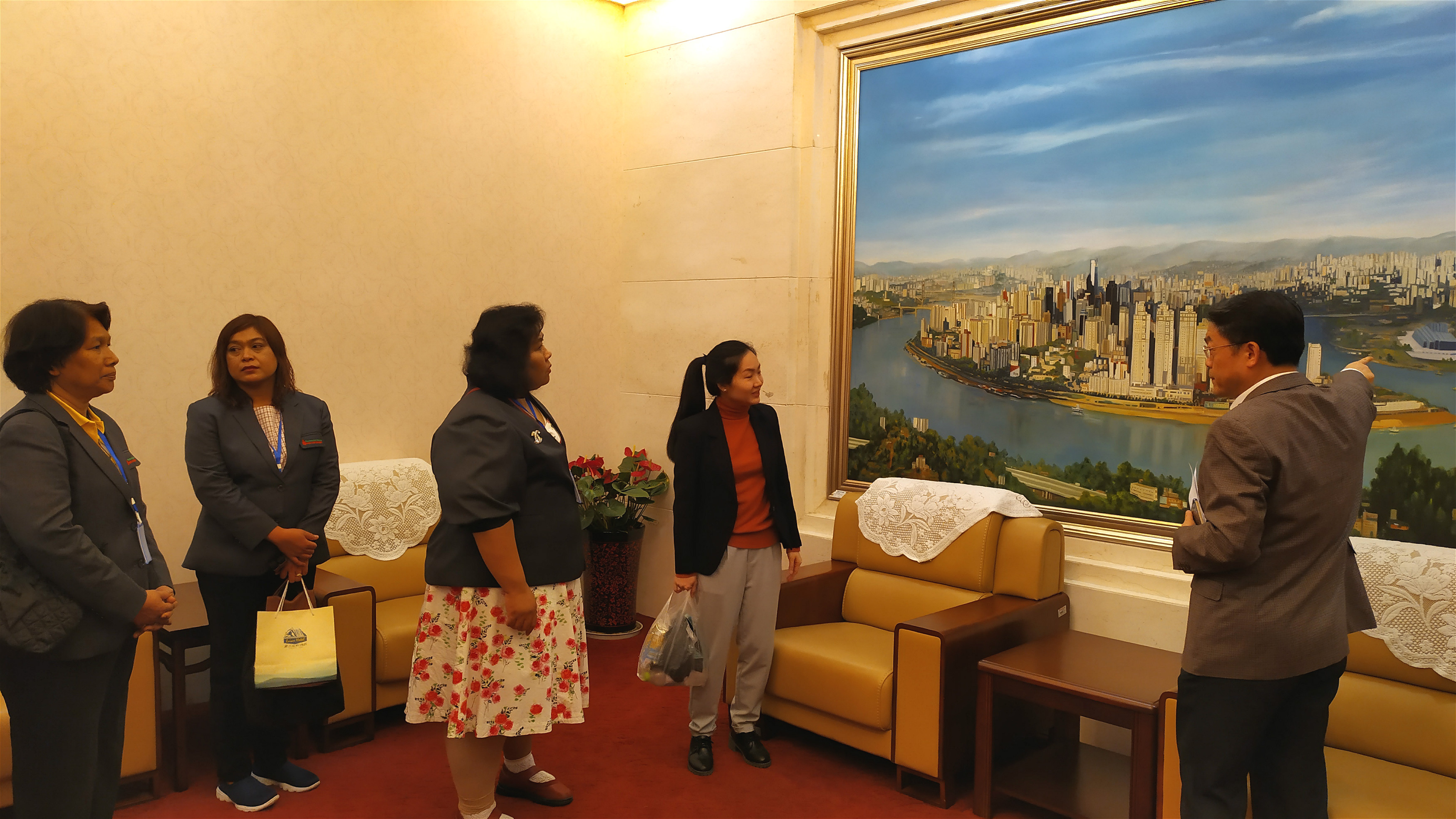 首先,代表团分成三组分别在刘猛书记、陈雨曦、杨昆的带领下参观了必赢776net教学、生活、办公等硬件设施。泰方人员对国际学生的优良学习生活环境给予了高度评价,并对泰国文化教室、留学生会办公室、中华才艺体验教室等特色场所表现了浓厚兴趣。