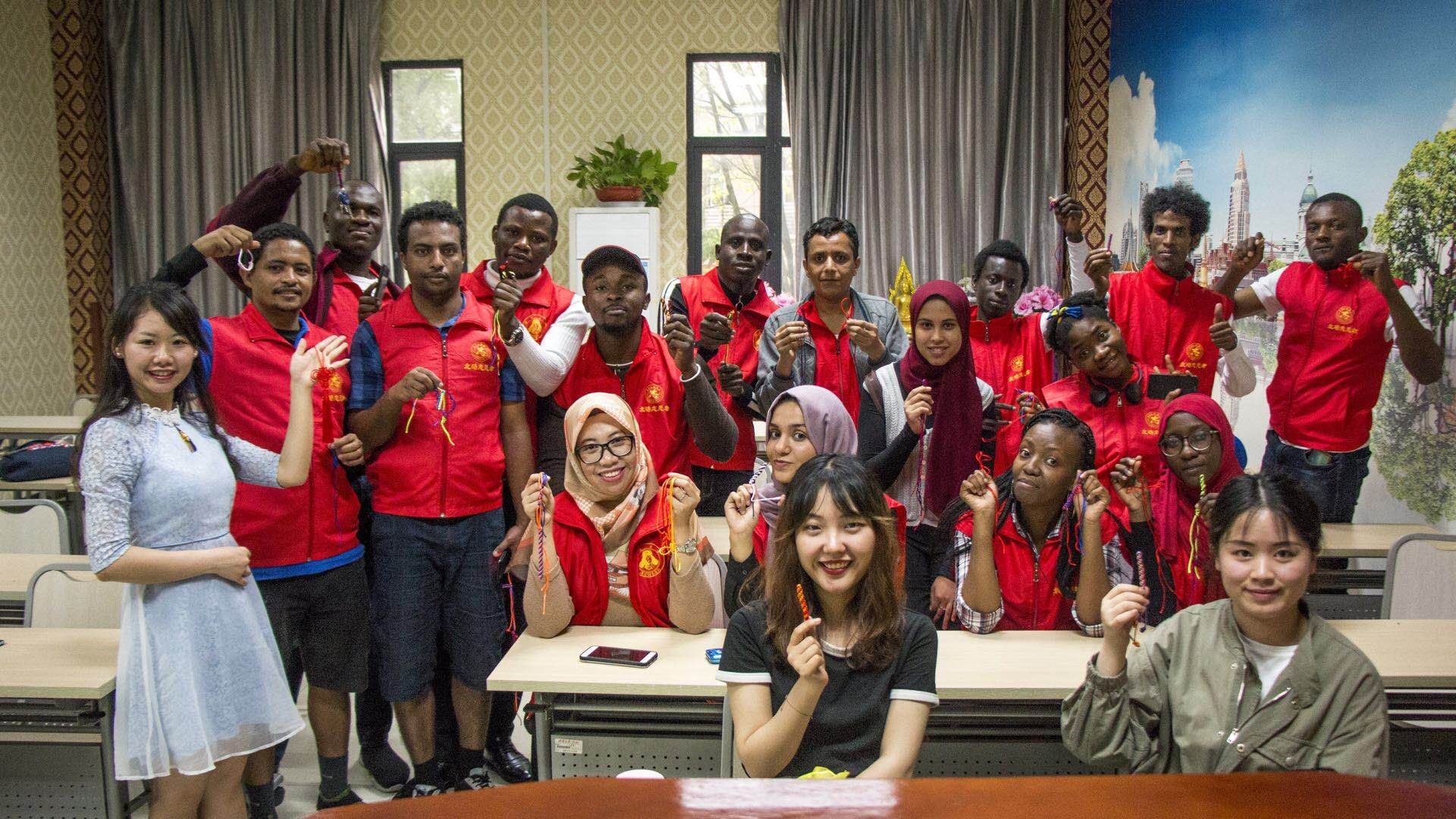 必赢776net必赢776net“洋雷锋”志愿者服务队为喜迎五一劳动节、致敬中国平凡英雄,2019年4月28日下午两点半在紫云楼210教室参加了“情系中国结,献礼劳动者”的编织中国结的文化体验活动,来自泰国、尼日利亚、马达加斯加、厄立特里亚、喀麦隆等国家的20余名洋雷锋志愿者参加了此次活动。