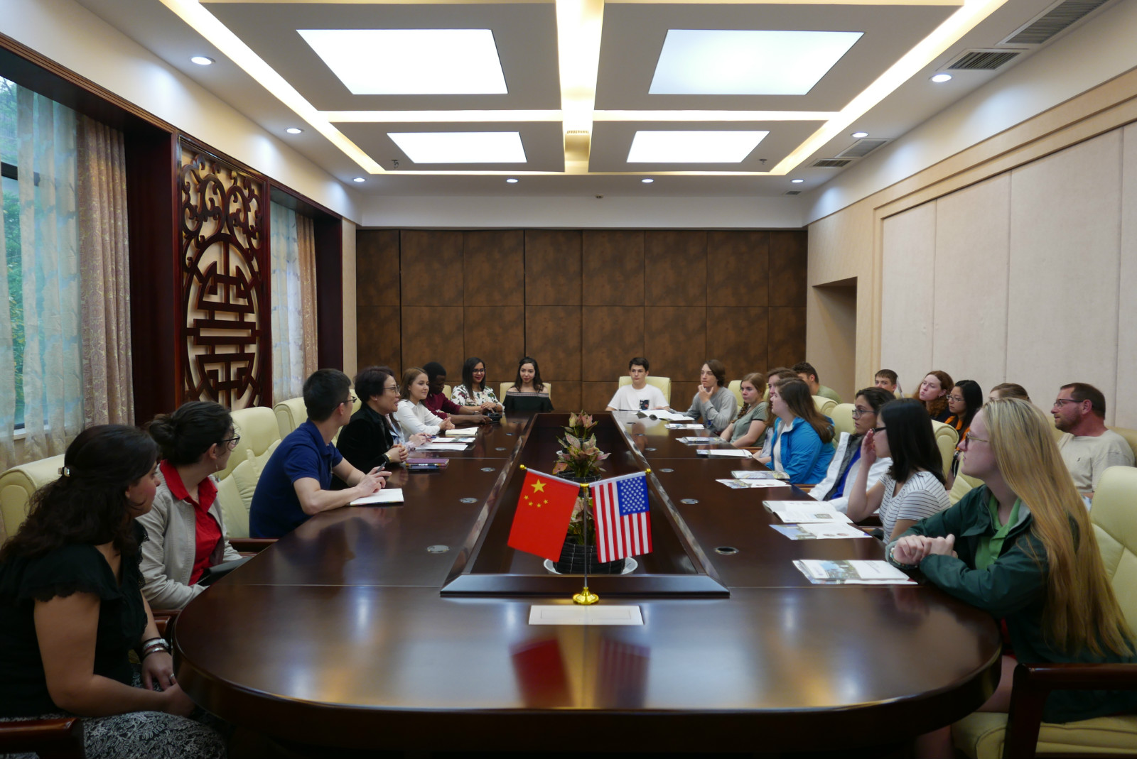 王静院长首先代表学院欢迎代表团一行来访,并从发展历史、国际学生人数、来华留学教育发展等方面介绍了学校和学院的基本情况。李林泽主任就汉语短期团、奖学金申请、学生管理、学生活动等进行了介绍。