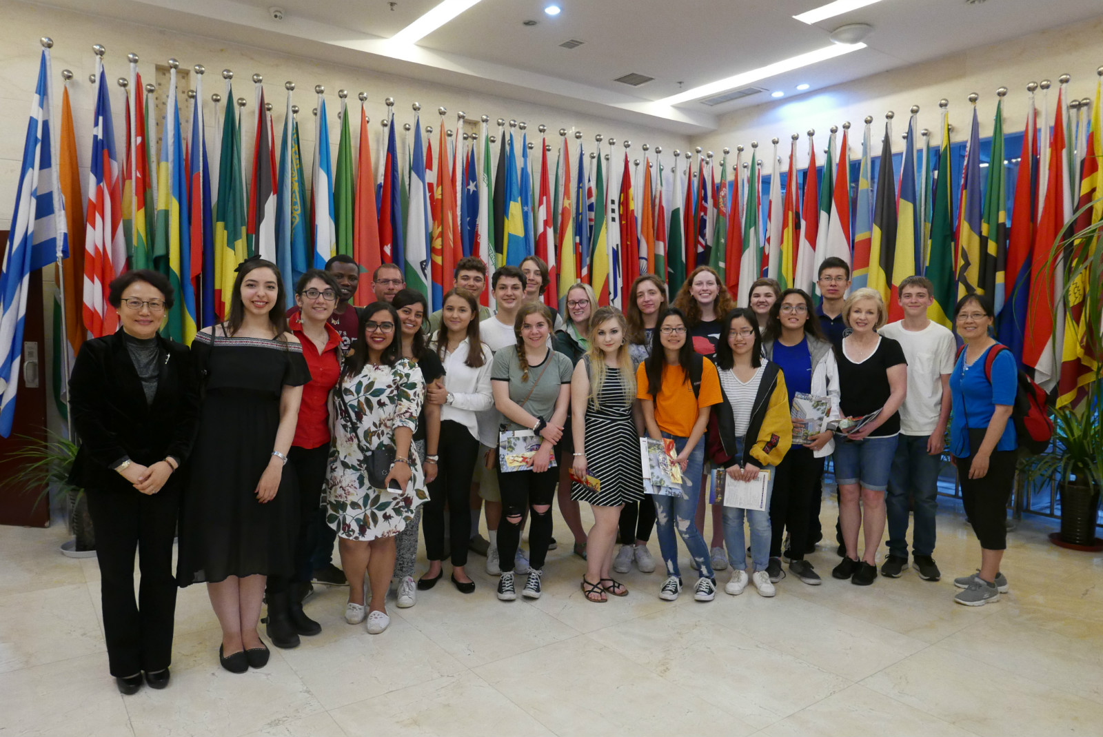 随后,美国立能高中代表团的学生与学校国际学生代表就在中国的学习和生活进行了深入交流。国际学生会副主席路易莎向大家分享了自己学习汉语的经历,并介绍了学校针对国际学生的本科项目和学分项目。代表团的学生纷纷对来学校学习产生了浓厚的兴趣。