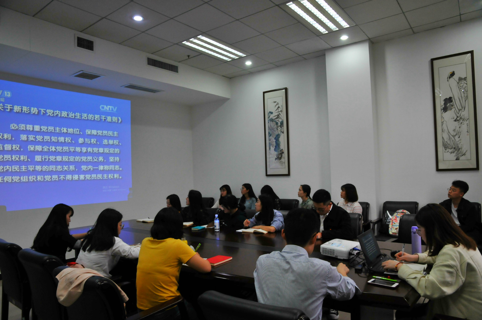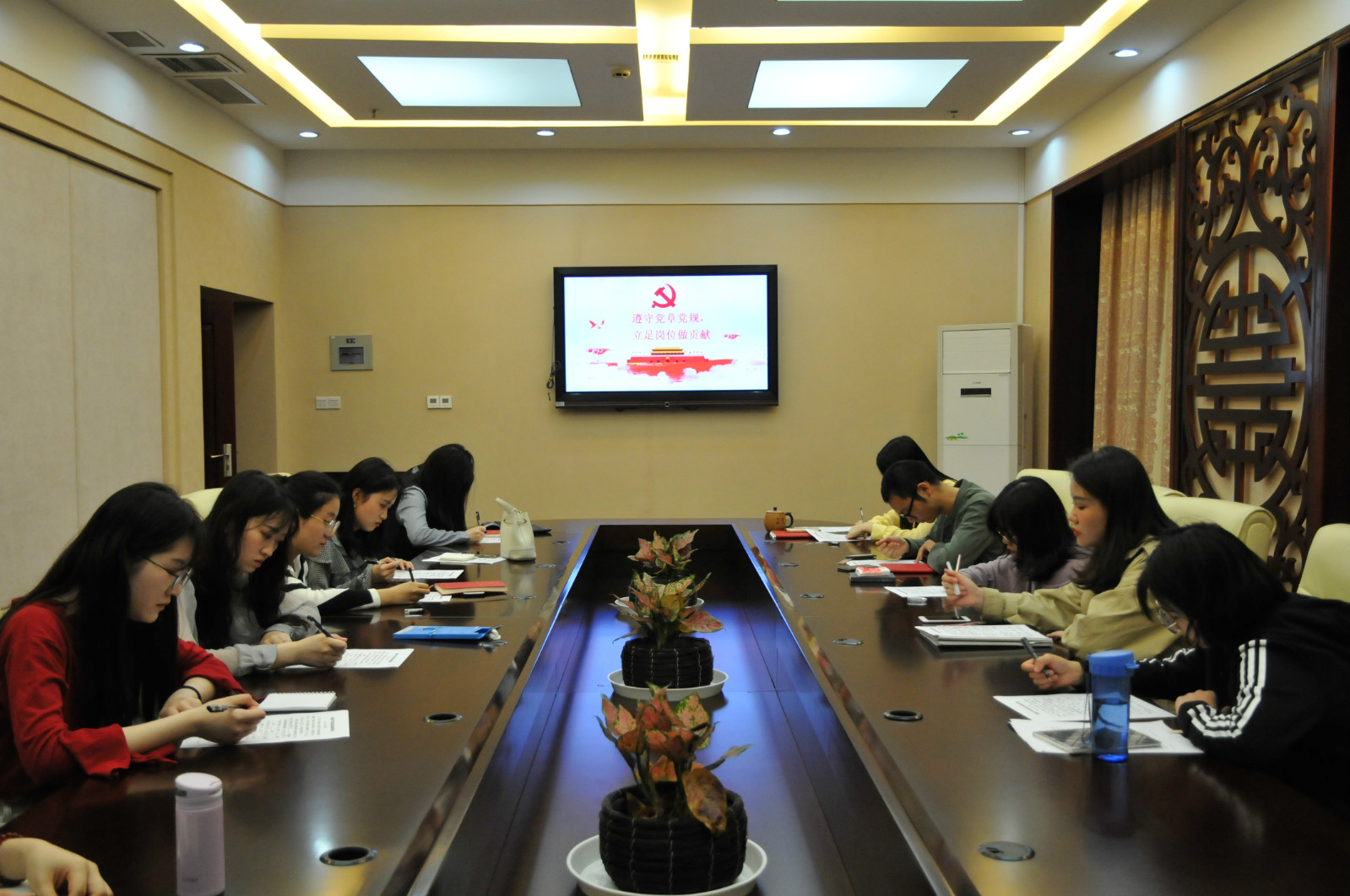下午3:00,必赢776net党总支研究生一支部在紫云楼签约室开展了“遵守党章党规,立足岗位做贡献”的主题党会。会议由支部书记陈雨曦主持。