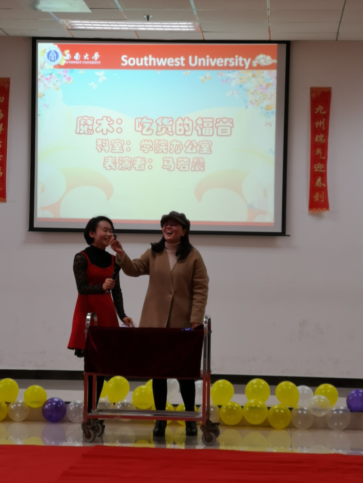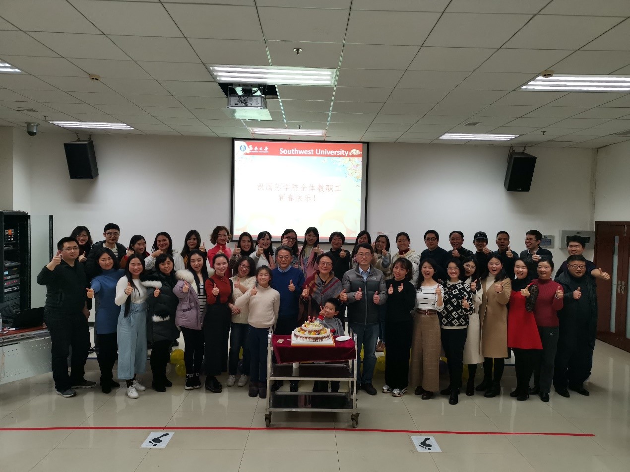 精彩纷呈的游戏环节和惊喜连连的抽奖环节使现场的欢呼声和掌声此起彼伏。在活动的最后,学院领导为大家亲自送上了代表着祝福的蛋糕,感谢全院职工对学院的付出。在喜庆热闹的活动中,全体教职员工共迎新春佳节的到来,一齐度过了一个美好而难忘的下午。