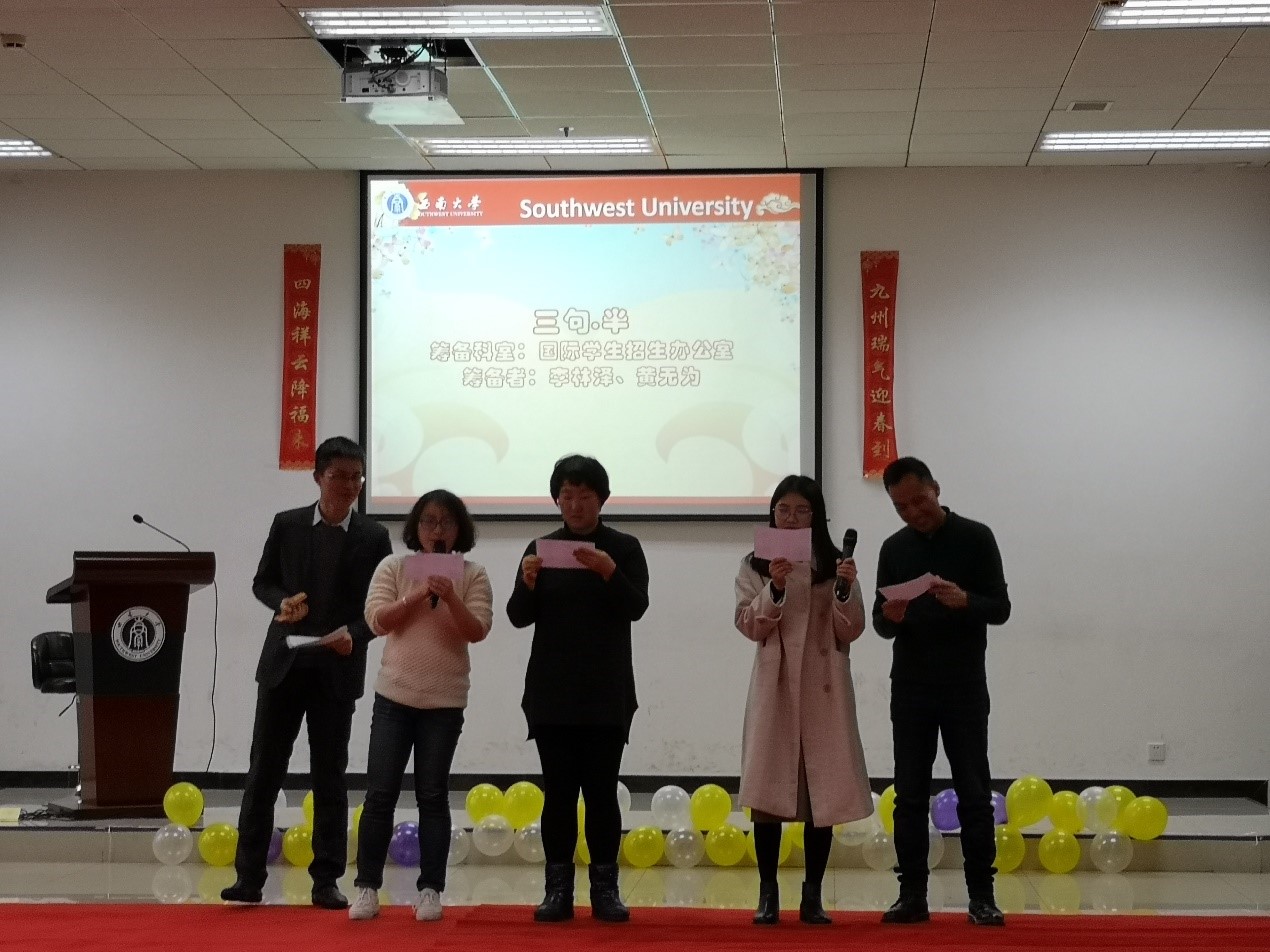 1月18日下午三点,必赢776net40余名教职工在紫云楼317室欢聚一堂,喜迎猪年新春。
