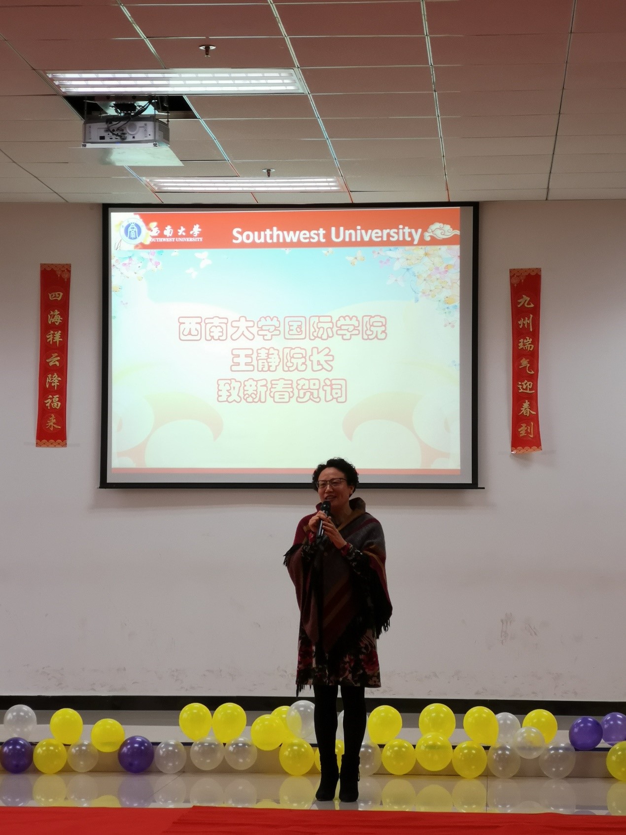 首先,王静院长代表学院领导班子回顾了学院在过去的一年取得的各项成绩,并向学院全体教职员工致以诚挚的感谢和新春的问候。