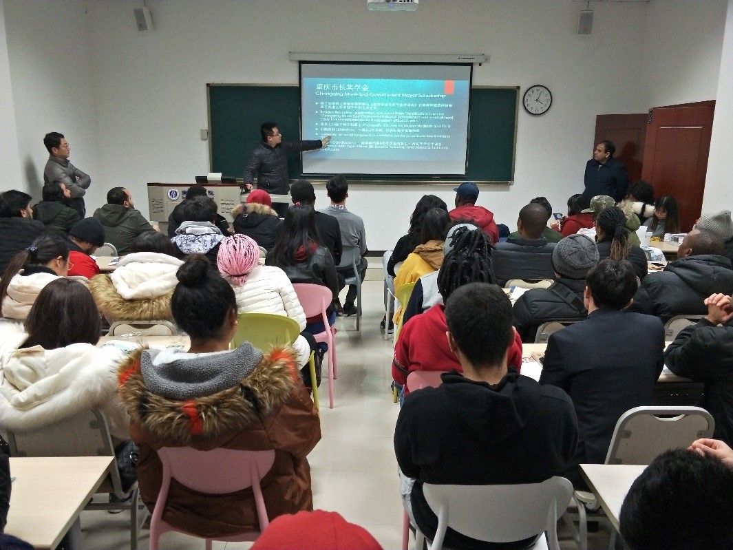 1月16日下午,必赢776net在紫云楼312室举行2019年来华留学生招生说明会。副院长李航、招生办公室全体工作人员和近70名校内外留学生代表参加了会议。会议由招生办公室主任李林泽主持。