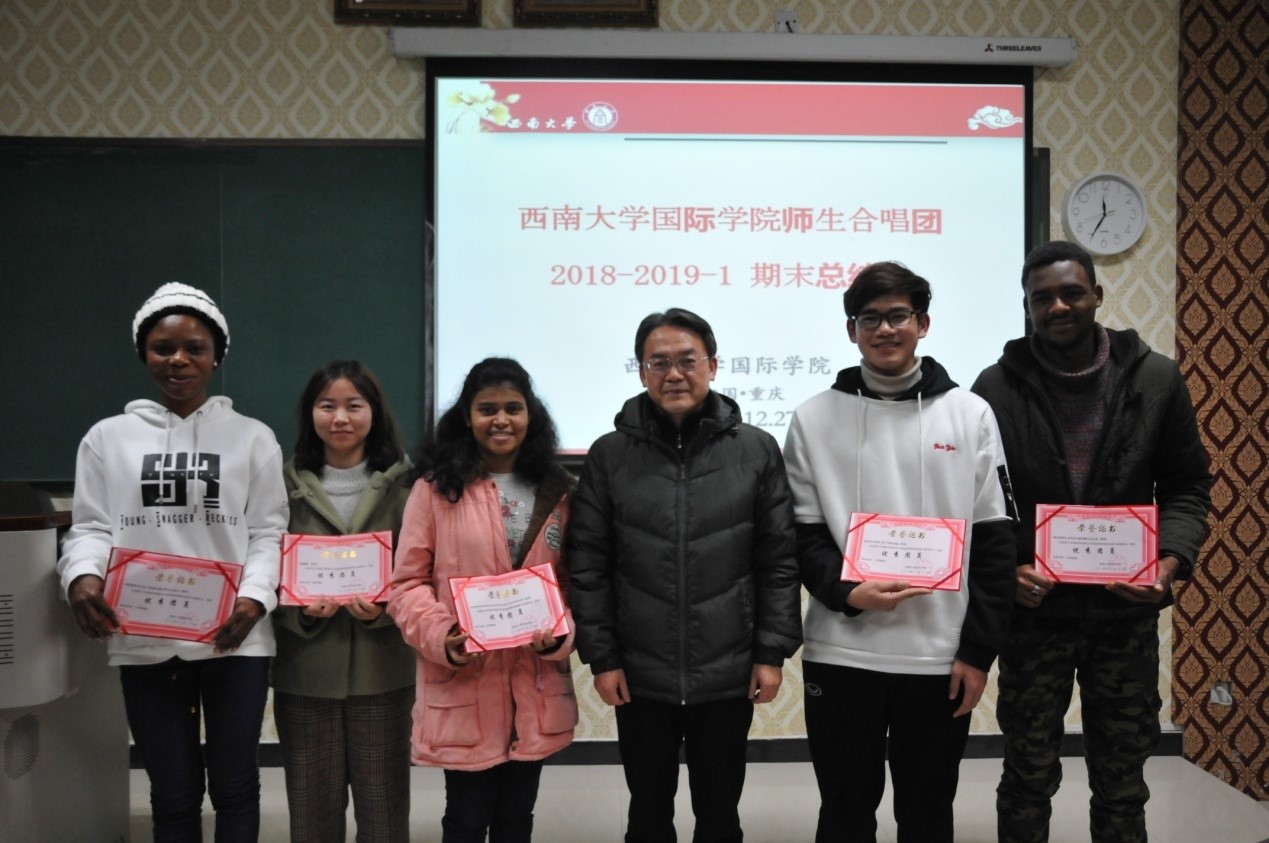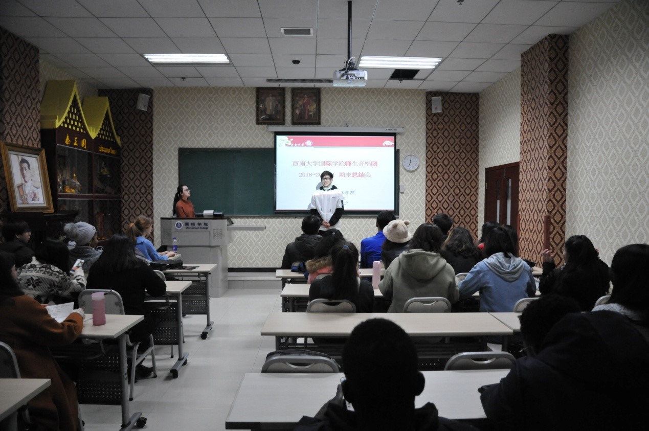 会议首先回顾了合唱团在“第十二届国际文化节”及“我和重庆一起飞——走进北碚中法文化交流周”活动上的演出视频,并观看合唱团成长主题短片。之后新老团员学生代表杜氏玉(越南)、周彦文(泰国)以及钟万平老师依次发言。他们纷纷表示,必赢776net师生合唱团给来华留学生提供了一个很好的交流平台,大家因为喜欢音乐走到了一起,不仅可以结识各个国家的朋友,也能更好地学习中文歌曲,了解中国文化。