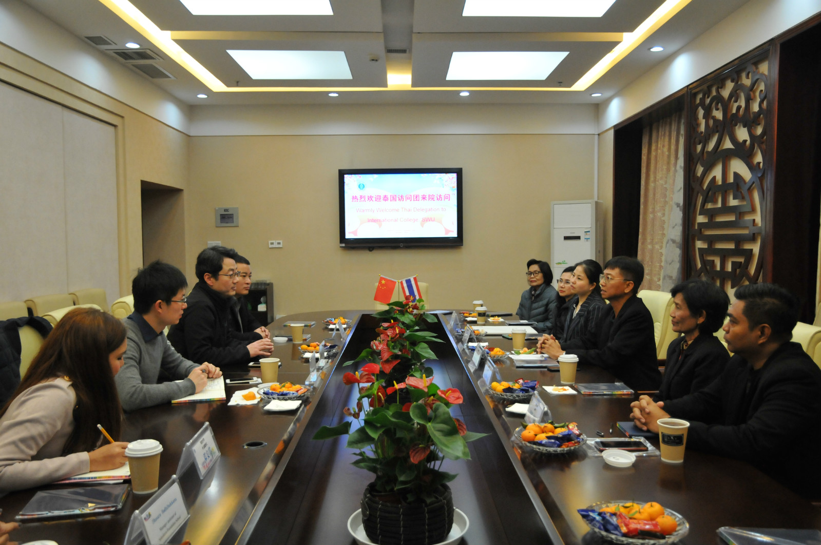 李院长代表学院对代表团一行来院访问表示热烈欢迎,并简要介绍了本年度学校来华留学生情况,特别是泰国籍留学生情况。他对国光中学、国光中学孔子课堂及其他三所中学长期以来为学校输送优质生源表示感谢,并以学校与泰国教育部的合作发展为例,希望通过交流和互访,进一步促进合作深度和范围。