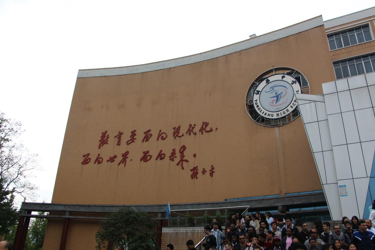 10月25日下午,国际学生们有幸受邀来到铜梁中学,走进中学课堂与中国师生交流沟通,分享经历,了解彼此国家文化。在课堂中,国际学生们了解了中国的礼仪知识,饮食文化,学习书法艺术和中国结的编制。随后,国际学生们与铜梁中学的学生们一同参观校史馆并共进晚餐。