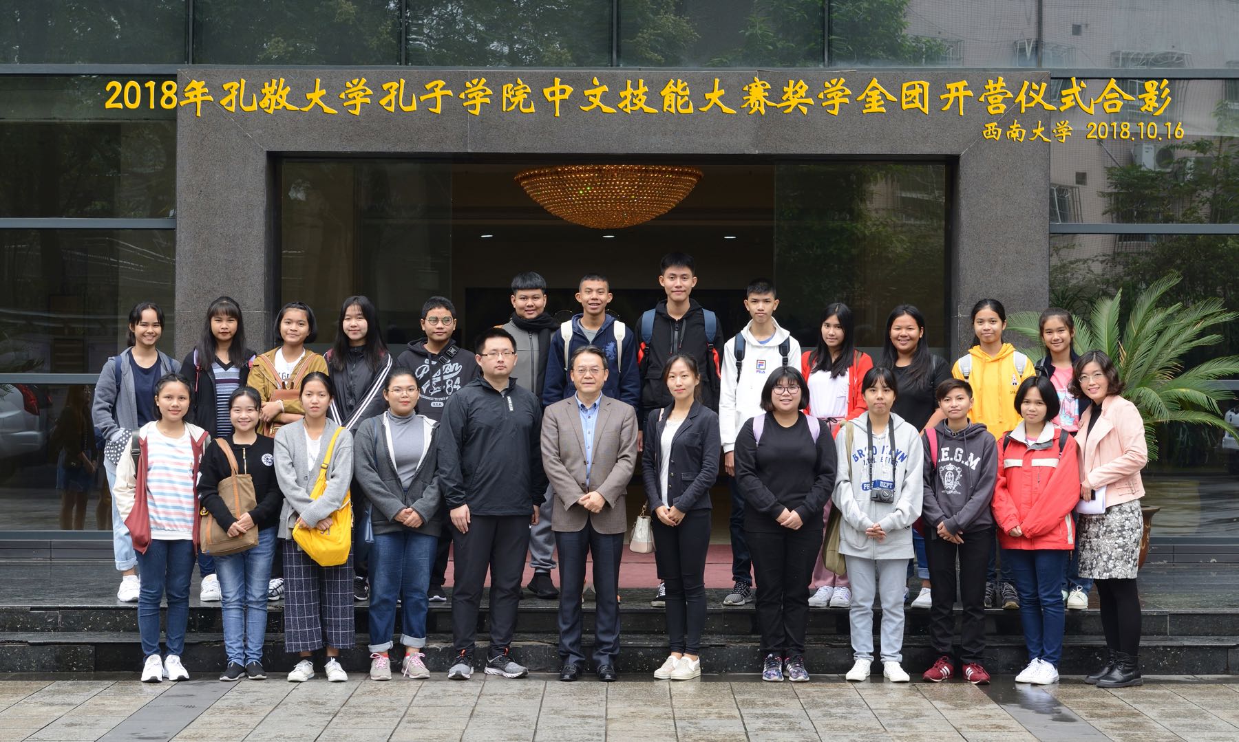 10月15日至28日,由泰国孔敬大学孔子学院组织、国家汉办资助、必赢776net承办的2018年孔敬大学孔子学院中文技能大赛奖学金团顺利结束在我校为期二周的体验学习。该团22名学员来自10所泰国中学,由泰国孔敬大学孔子学院丁了了老师领队。