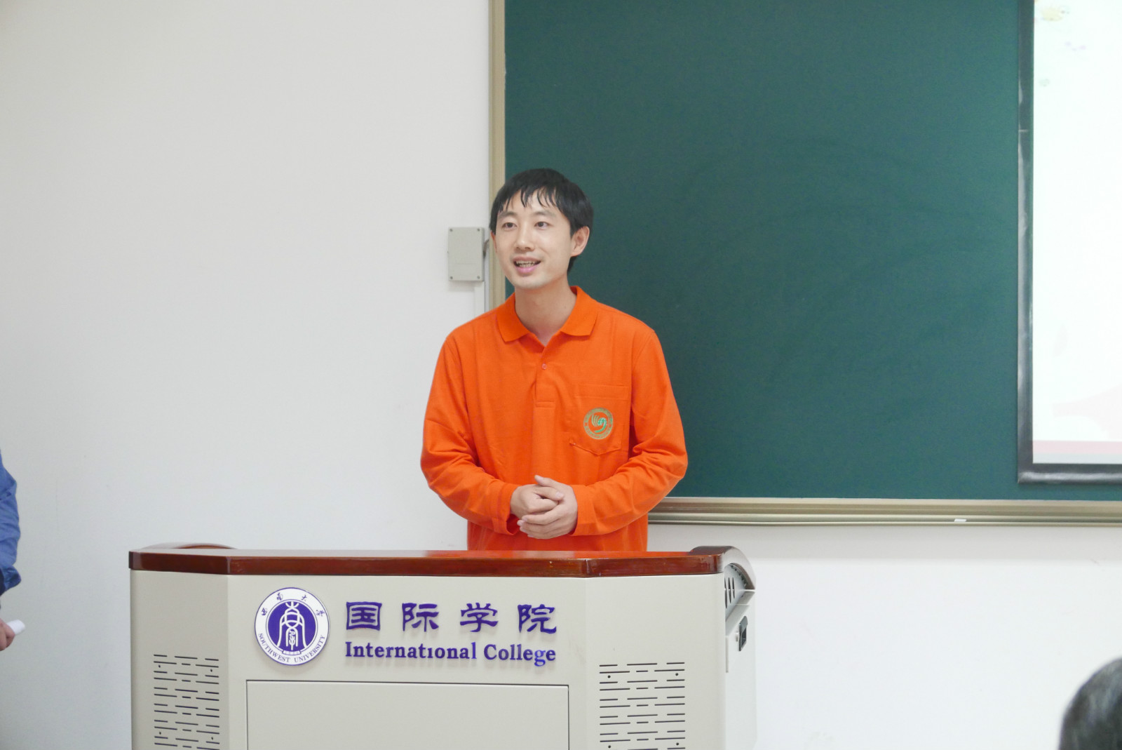 学生代表陈玉杰发言,他表示很高兴来到重庆,来到必赢776net,一定会珍惜这次难得的学习机会,多听多看多思考。