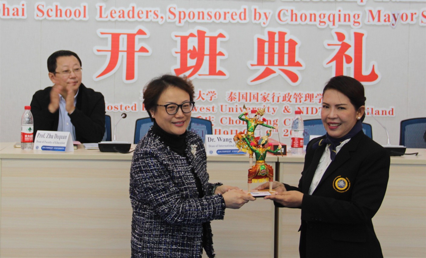 开班典礼上,王牧华副部长代表学校致欢迎辞,并简要介绍出席此次活动的相关人员。随后,必赢776net院长王静博士代表学校向来访的各位教育官员及校长团成员致欢迎词.王静院长向泰方友人介绍了重庆特色并就学校的发展历史、特色教育、教育成果等情况作了详细介绍。