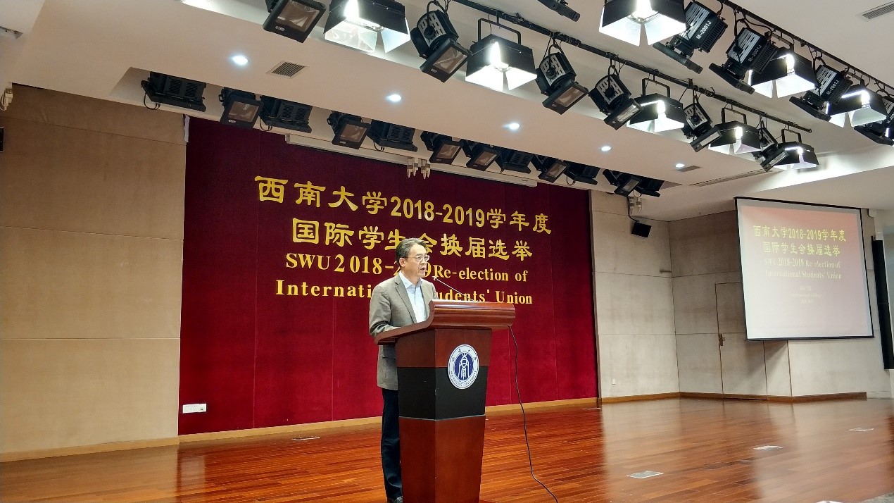 刘猛书记首先致辞,对上一届国际学生会的全体成员表达了诚挚感谢,充分肯定大家的工作成绩,并预祝本次选举圆满成功。他期待新一届国际学生会成员更加努力进取,再创辉煌,并号召全体代表慎重地为候选人投上宝贵的一票。