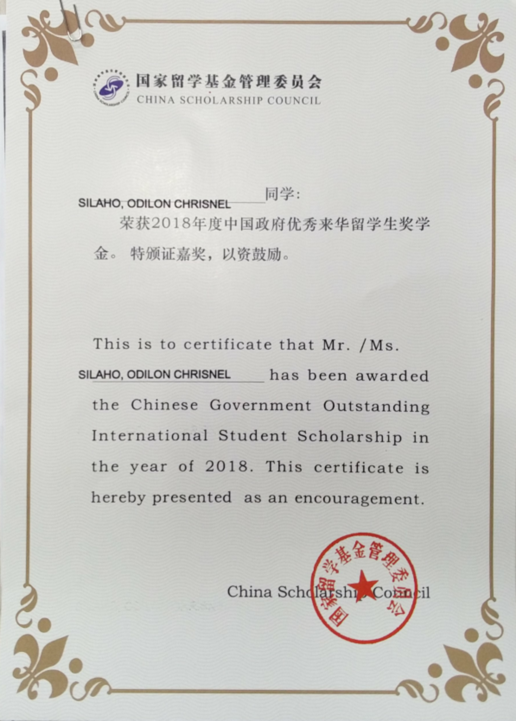 为扩大中国政府奖学金的辐射面和影响力,培养更多知华、友华的国际优秀人才,教育部针对在华留学生设立了“中国政府来华留学生奖学金”。学校蒙古学生贺西格、刚果(布)学生思拉河分别凭借“2016年汉语桥全球外国人汉语大会”知识会单项奖和“2017年汉语桥全球外国人汉语大会”团体二等奖等优异表现,从全国600余所高校的众多申请者中脱颖而出,最终通过“中国政府优秀来华留学生奖学金”(本科生类)开放名额的专家评审。此外,巴西学生桑洁丽、泰国学生孙玉玲、泰国学生肖媛媛等3名留学生作为学校定向名额的推荐人员,也被授予了“中国政府优秀来华留学生奖学金”。