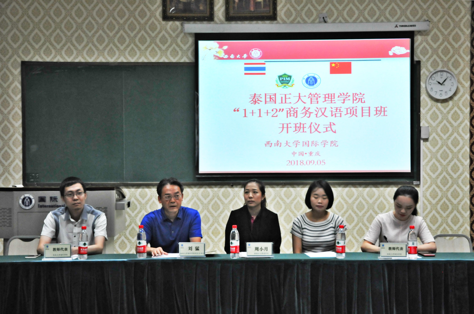 泰国正大管理学院周小月老师衷心感谢学院各位老师为该项目班的辛勤付出,她希望同学们能够抓住难得的留学机会,早日学有所成。任课教师代表林千彭不仅真诚传达了教师们对同学的关心,同时也希望同学们能在这里认真学习,快乐生活。